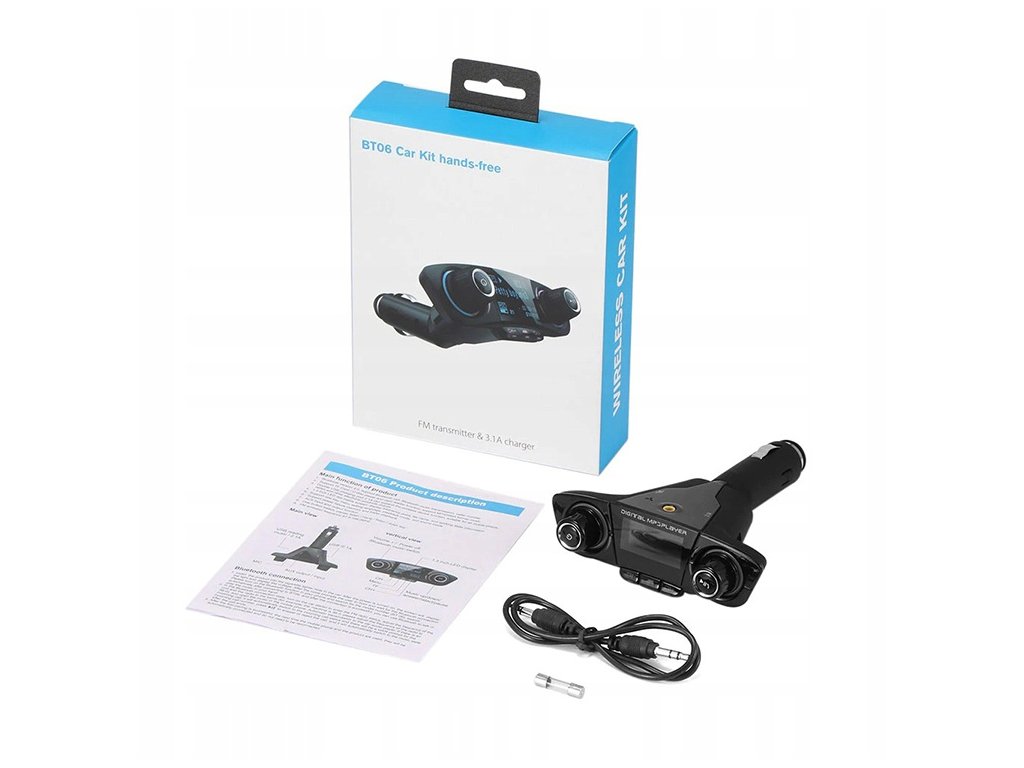 Sada obsahuje: - Zcela nový vysílač - AUX kabel - Pojistku - Manuál v angličtině - Originální balení