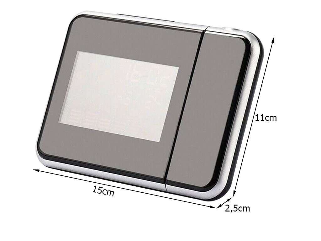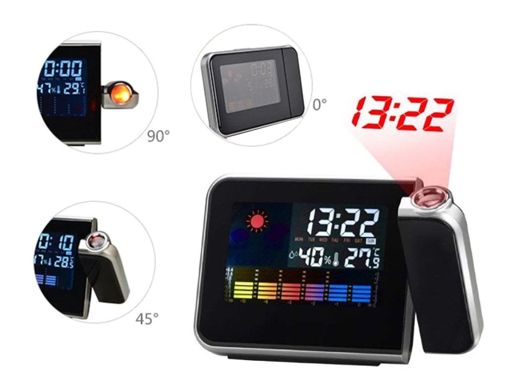 Moderní meteorologická stanice se stylovým designem, která se perfektně hodí do prostoru jakéhokoli pokoje. Lze ji umístit kamkoli na skříňku, parapet nebo stůl. Toto zařízení bude užitečné v mnoha domácnostech díky své mimořádné funkčnosti. Produkt nám zobrazí aktuální teplotu, vlhkost a čas. Hlavní funkce: - Stanice je vybavena projektorem, který lze nasměrovat na stěnu nebo strop, abychom mohli číst čas i ve tmě. - Povětrnostní stav je zobrazován pomocí grafiky: slunečno, částečně oblačno, oblačno, deštivo. - Displej také ukazuje, který den v týdnu je. - Hodiny mají pevnou protiskluzovou základnu. Indikátory displeje: - Ukazatele komfortní vlhkosti za posledních 12 hodin - Ukazatel vlhkosti - Teplota - Den - Čas - Budík - Grafika počasí Popis tlačítek: - Projektor času - Nastavení režimu - Nastavení času nahoru - Nastavení času dolů - Minimální a maximální vlhkost a teplota - Nastavení odloženého buzení - Vstup napájení - Slot na baterie - Podstavec Technické specifikace: - Kód produktu: 01764 - Vyrobeno z vysoce kvalitních materiálů - Barevný LCD displej - Moderní design - Bezdrátový - Multifunkční - Formát času: 12/24 hodin - Funkce alarmu a odloženého buzení - Projektor času - Funkce předpovědi počasí - Napájení: 2x AAA baterie (nejsou součástí balení) - Nastavitelný projektor (zaostření a úhel) - Teplota: °C a °F - Zobrazení minimální/maximální vlhkosti a teploty vzduchu - Rozměry stanice: 15 cm x 11 cm x 2,5 cm - Produkt je certifikovaný CE Sada obsahuje: - Novou meteorologickou stanici - Originální balení
