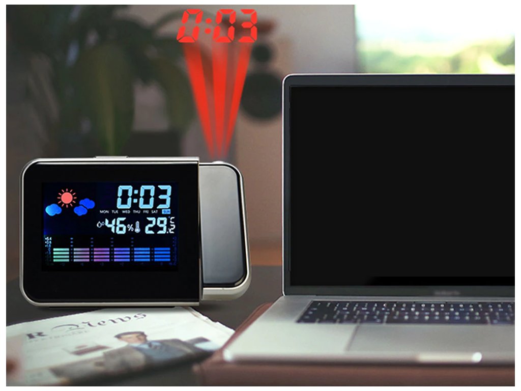 Úzká meteostanice s projektorem a vlhkostním měřením