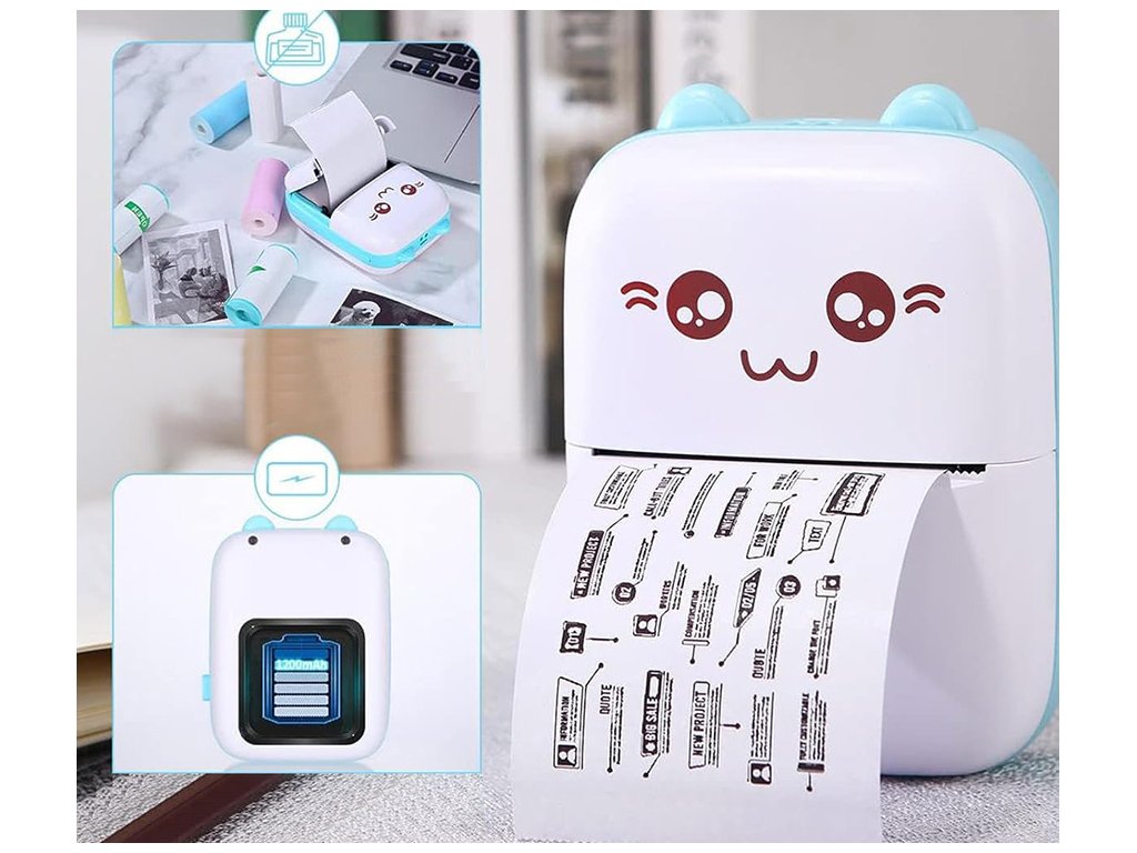 Tiskárna je navržena s ohledem na příjemný estetický vzhled, inspirovaný tvarem kočky. Díky svým malým rozměrům je snadno přenosná, což poskytuje možnost ji mít stále po ruce, ať už ji potřebujete použít doma nebo v práci. Roztomilé prvky, jako jsou ouška a oči, činí tuto tiskárnu nejen praktickým zařízením, ale i zajímavým dekoračním doplňkem.