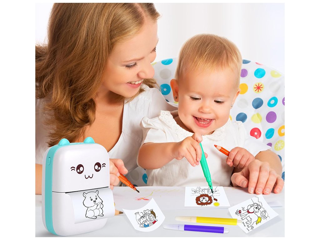 Mini tiskárna - kočka je kompatibilní s většinou běžně používaných zařízení. Snadno se připojuje k počítači, notebooku nebo chytrému telefonu, což zajišťuje vysokou míru flexibility při jejím používání. Bezdrátové připojení je samozřejmostí, což přidává na komfortu při tisku z různých zařízení v domácnosti nebo kanceláři.