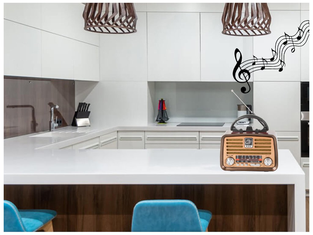 Retro kuchyňské mobilní rádio fm am bluetooth usb dobíjecí anténa