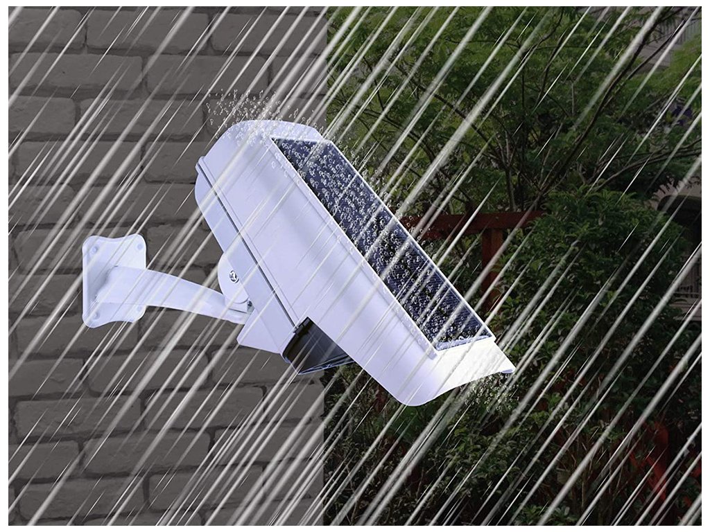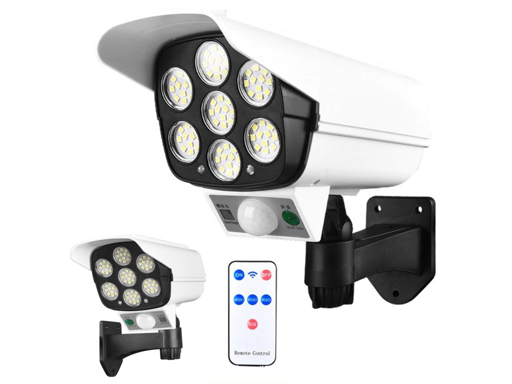 Tato vysoce kvalitní maketa kamery je solárně napájené zařízení, které zajišťuje osvětlení bez nutnosti dalšího napájecího zdroje. Je vybavena velmi jasným panelem 77 COB LED diod s výkonným světelným výstupem.