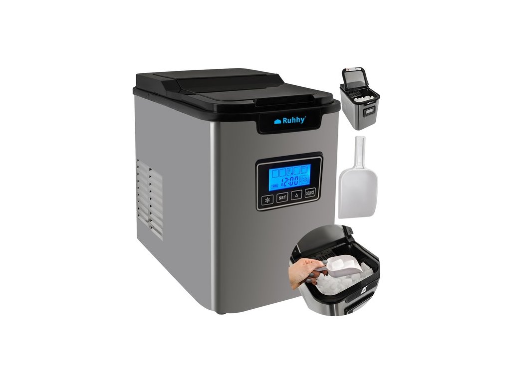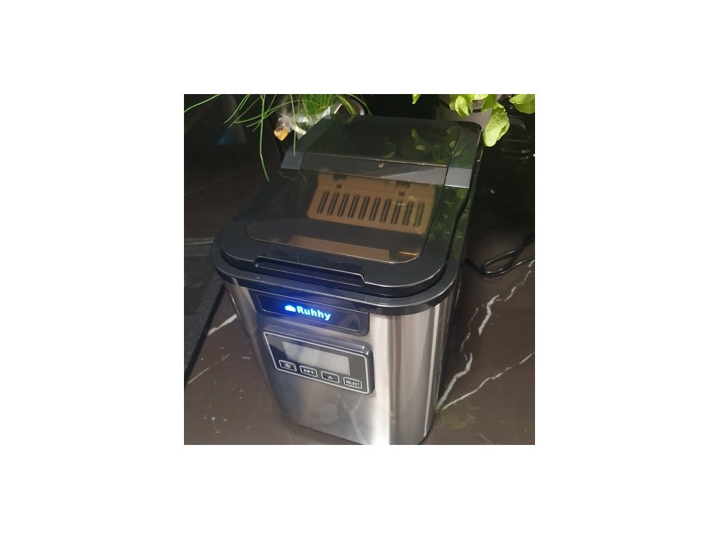 Výrobník ledu je velmi výkonné zařízení, které vám umožní připravit studené nápoje na večírku, v kanceláři nebo kdekoli, kde máte chuť. Je ideální pro přípravu ledové kávy. Použití je velmi snadné - nepotřebujete přímé napojení na tekoucí vodu. Stačí nalít vodu do nádržky, vybrat velikost kostek ledu a za chvíli jsou hotové. Na krytu výrobníku ledu je průhledové okénko, které umožňuje monitorovat proces bez přerušení chodu zařízení. Protiskluzové nožky na spodní straně zařízení zajišťují stabilitu a minimalizují riziko poškození. Výrobník ledu využívá kompresor s výkonem 120 W, což umožňuje vyrobit až 12 kg ledu za den. První porce ledu (9 kostek) je připravena za 9 až 13 minut po spuštění stroje, což závisí na zvolené velikosti kostek.