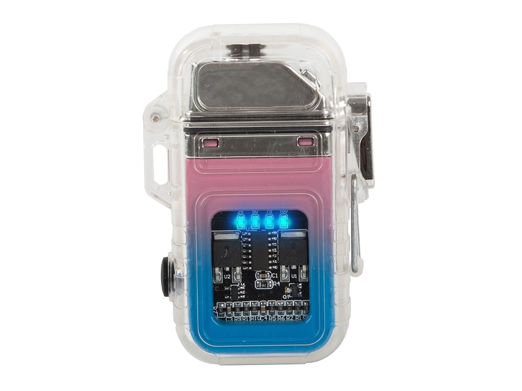 - Plazmová spirála: Zapalovač obsahuje speciální plazmovou spirálu poháněnou elektřinou, která nevyžaduje palivo jako plyn nebo parafín.