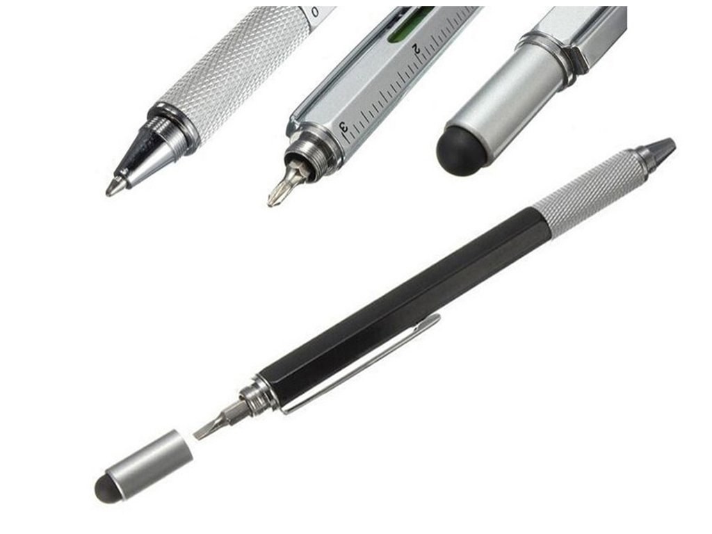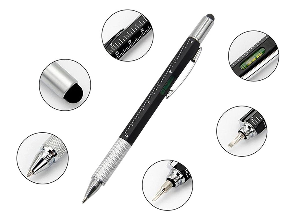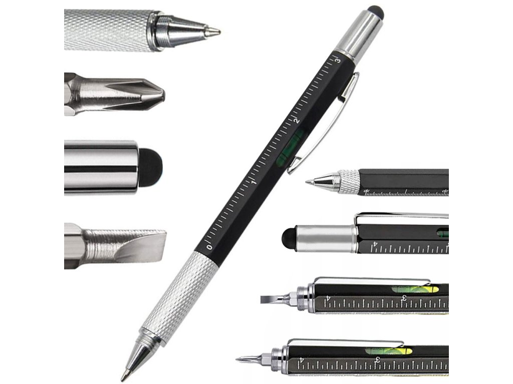 Multifunkční pero šroubovák multitool 6v1 vodováha klip