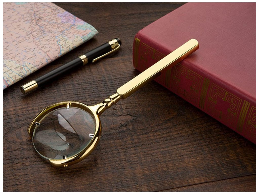 Zlatá ruční čtecí lupa 6x se zvětšením pro pohodlné čtení a detailní prohlížení