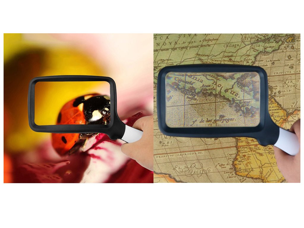 Díky velké čočce a vestavěným LED diodám je obraz velmi jasný a snadno čitelný. Lupa nabízí 3x zvětšení, které umožňuje: