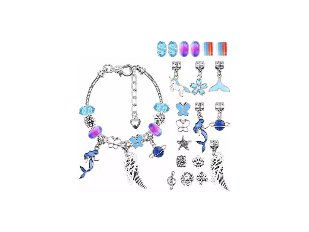 - Do sady bylo připojeno 5 náhrdelníků a 5 náramků pro navlékání korálků a přívěsků.