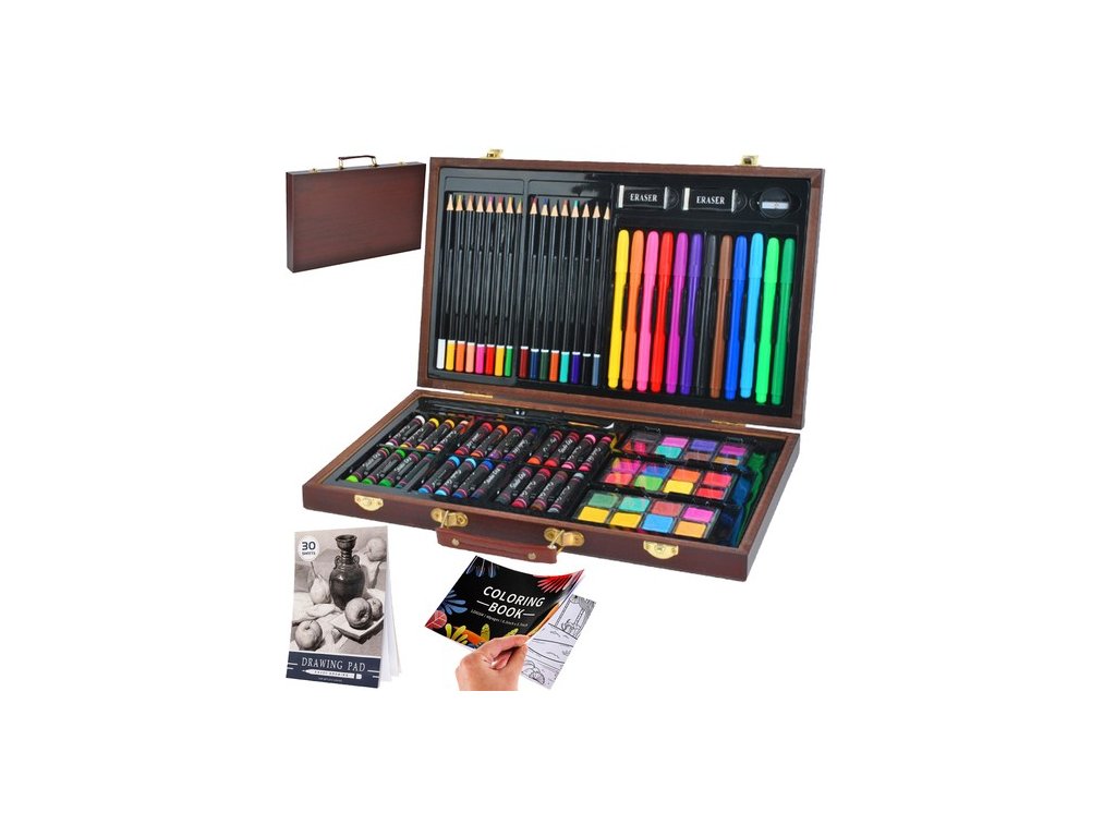 Sada na malování a kreslení je skvělý způsob, jak začít své umělecké dobrodružství. Obsahuje celkem 81 užitečných prvků, které umožňují praktické využití a realizaci různých kreativních nápadů. Pomocí olejových pastelů, pastelek, akvarelových barev, fixů, štětců, ořezávátka a gumy, stejně jako omalovánek a kreslícího bloku, můžete snadno vytvářet efektní a originální díla. Materiály byly vyrobeny z kvalitních materiálů a nabízejí širokou atraktivní barevnou škálu.
