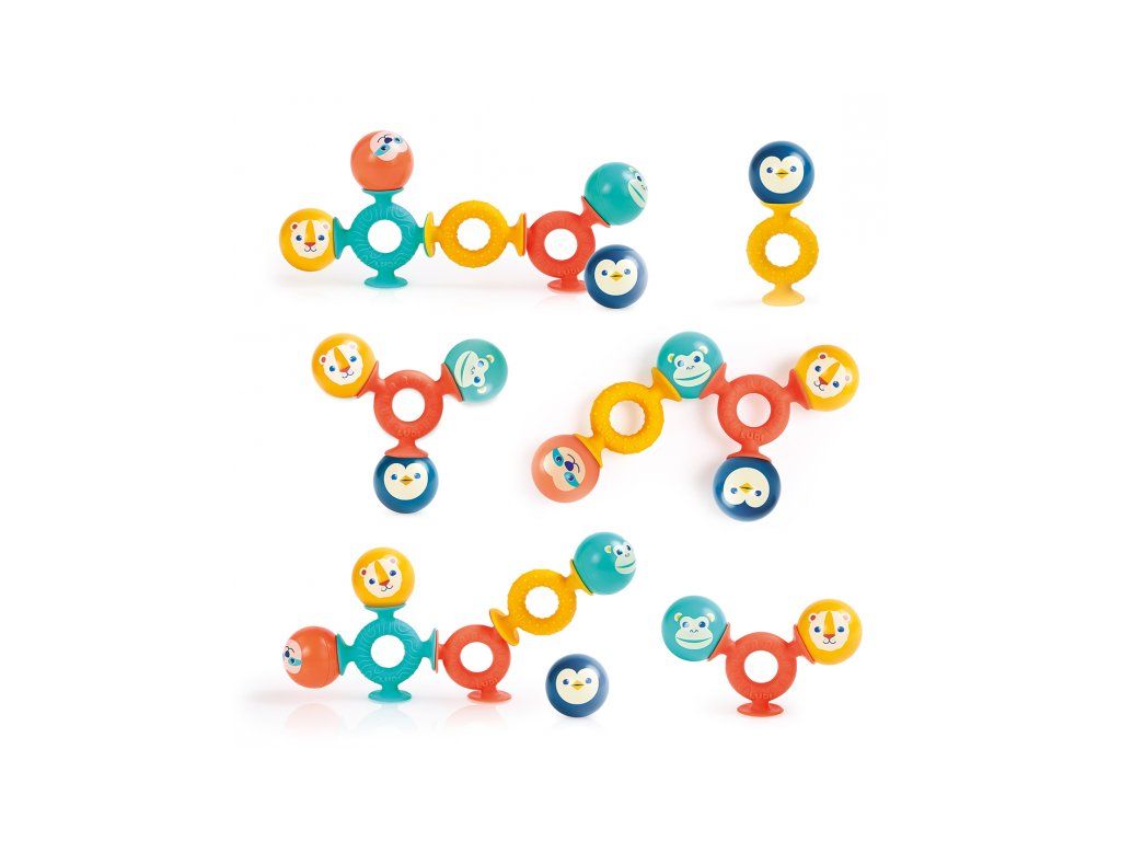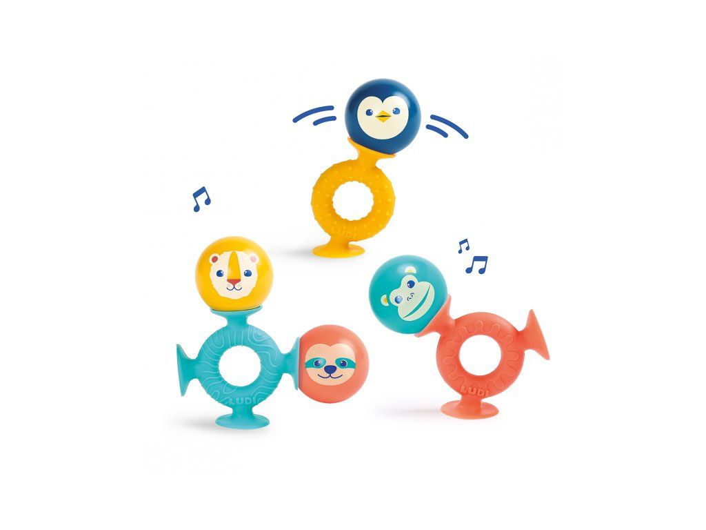 Sada chrastítek s přísavkami Smack Pop je originální hračka pro děti od 10 měsíců, která kombinuje barevné chrasticí kuličky a silikonové kroužky s přísavkami. Dítě může jednotlivé díly spojovat a vytvářet vlastní kombinace – na jídelním pultu, na stole i ve vaně. Přísavky drží pevně na hladkých površích, takže hračka zůstává na místě a dítě se může soustředit na objevování. Při zatřesení kuličky s motivy zvířátek vydávají zábavné zvuky, které podporují smyslové vnímání a udržují pozornost. Hračka pomáhá rozvíjet jemnou motoriku i tvořivost dítěte. Hračka je vhodná do vody, takže ji můžete využít i pro větší zábavu při koupání ve vaně. Balení obsahuje 3 silikonové kroužky s přísavkami a 4 kuličky. Vhodné pro děti od 10 měsíců.Doplňkové parametry