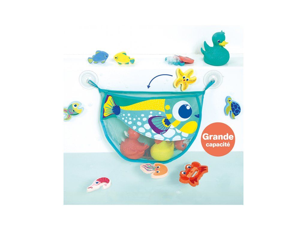 Originální skládací koš na hračky ve veselém designu ryby nabízí chytré řešení, jak mít koupelnu uklizenou hned po koupání. Koš snadno připevníte díky dvěma přísavkám nad vanu. Síťovinové díly umožňují odtok vody z uložených hraček a jejich vyschnutí. ideální pro organizaci hraček a udržení koupelny v pořádku prodyšná síťovina podporuje rychlé schnutí a lepší hygienu 2 pevné přísavky pro stabilní uchycení na hladké povrchy Pokud koš nepoužíváte, je možné jej složit do plochého kompaktního tvaru. Rozměry: 35 x 25 x 5,5 cm. Složení: 100 % polyesterDoplňkové parametry