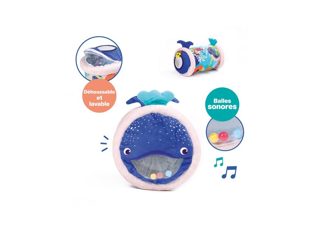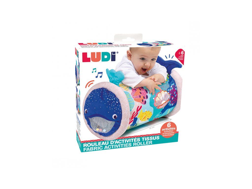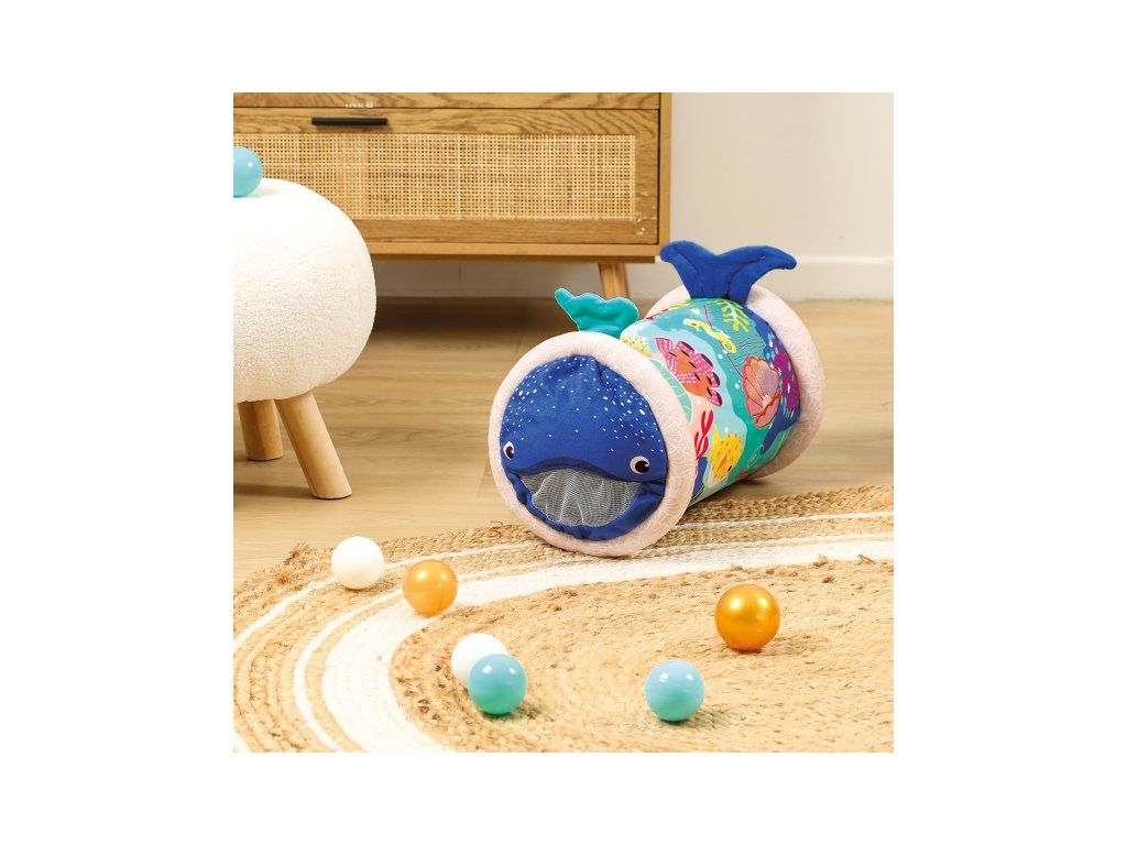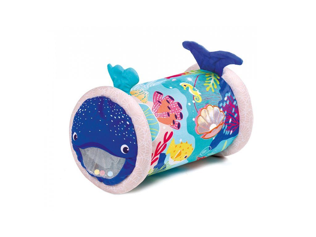 Originální hračka ve tvaru válce s množstvím aktivit pro zkoumání zabaví dítě a současně podněcuje rozvoj jeho smyslů a motorických dovedností. Uvnitř skrývá cinkající míčky, textilní potah s krásnými motivy ze života pod mořskou hladinou nabízí různorodé textury, bezpečné zrcátko i chrastítko. Dítě se o válec může opírat, lézt přes něj, přetáčet ho nebo ho „dohánět“ při plazení. Vnitřní část je nafukovací, takže válec je lehoučký a dítě ho dokáže snadno zvednout. Rozměry: 45 x 27 x 27 cm Údržba: Otírejte vlhkým hadříkem Vhodné pro děti od 6 měsíců.Doplňkové parametry