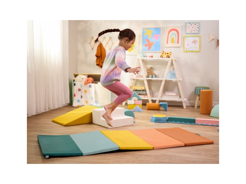 Barevná skládací podložka WonderTumble je ideální pro všechny aktivní děti, které se rády hýbou i doma. Podložka je tvořená pěti měkkými pěnovými panely, které se snadno rozloží do prostorné podložky na skákání, cvičení, tancování apod. Jemný měkký povrch tlumí dopady a podporuje bezpečnější pohyb při hraní. Kromě zábavy pomáhá podložka rozvíjet hrubou motoriku a motivuje děti k přirozenému pohybu. Po skončení hraní ji jednoduše složíte, přenesete pomocí praktického držadla a pohodlně uložíte – doma i na cestách. pěnová podložka na cvičení a aktivní hru v interiéru 5 skládacích pěnových panelů – měkké a pohodlné vhodná na skákání, kotouly, tanec i relax skládací a přenosná, s držadlem pro snadné přenášení podporuje pohyb, rozvoj hrubé motoriky a aktivní hru Rozměry: 175 x 72 x 2,5 cm Vhodné pro děti od 3 let.Doplňkové parametry