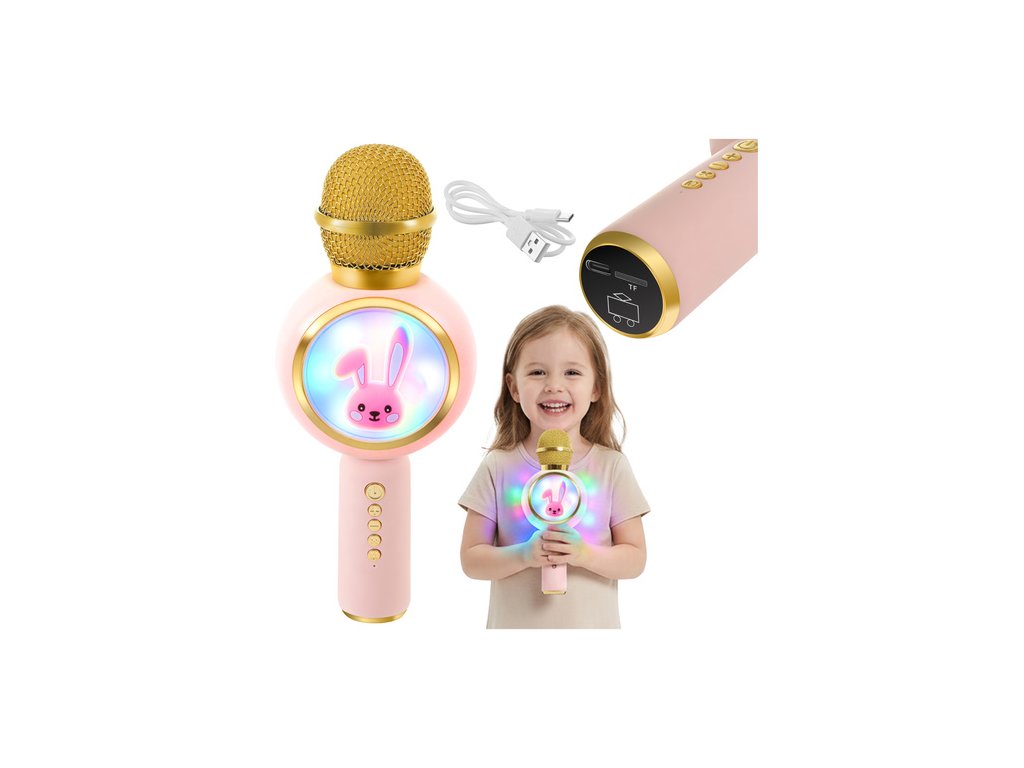 Bezdrátový Bluetooth karaoke mikrofon pro děti s králíkem a reproduktorem