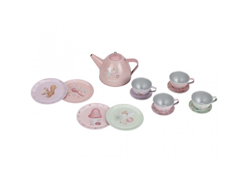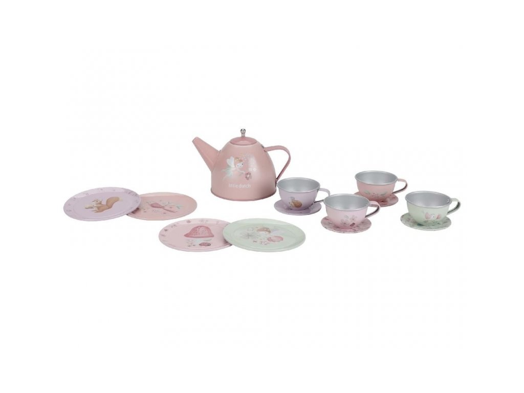 Neodolatelná sada čajové konvičky a čtyř hrníčků s podšálky v kvalitním kovovém provedení s krásným potiskem motivů ze života na zahradě. Sada potěší malou hostitelku či hostitele při pořádání čajového dýchánku pro panenky nebo pro kamarády. 13-dílná sada je součástí designové kolekce hraček a doplňků Little Dutch Fairy Garden inspirované životem na zahradě. Vhodné pro děti od 3 let.