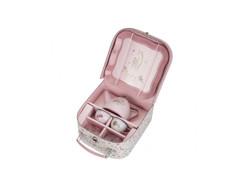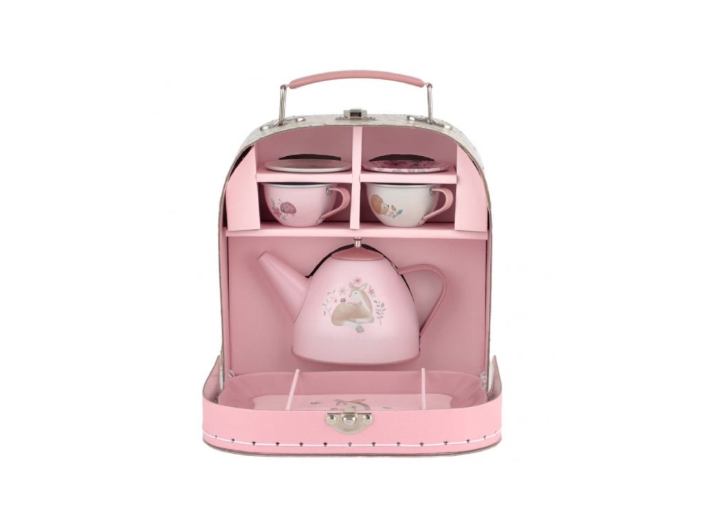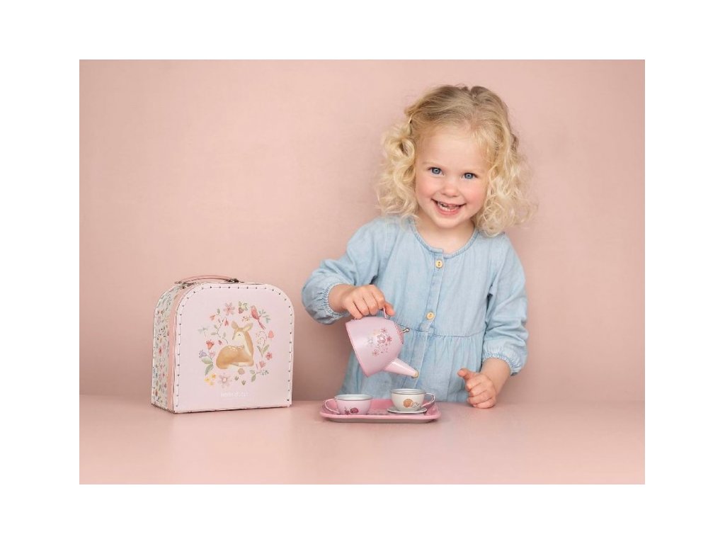 Máte chuť na šálek čaje? Otevřete kufřík a připravte si s vaším dítětem dokonalý večírek s krásným čajovým setem z kolekce Fairy Garden. Hraní rolí pomáhá rozvíjet dětskou představivost a rozvoj sociálních dovedností. Sada se skládá z kufříku, dvou čajových šálků, dvou podšálků, tácu a konvice s víčkem v kovovém provedení s krásným potiskem. Čajový set je součástí designové kolekce hraček a doplňků Little Dutch Fairy Garden inspirované životem na zahradě. Rozměry: 17,5 x 17 x 9 cm Vhodné pro děti od 3 let.
