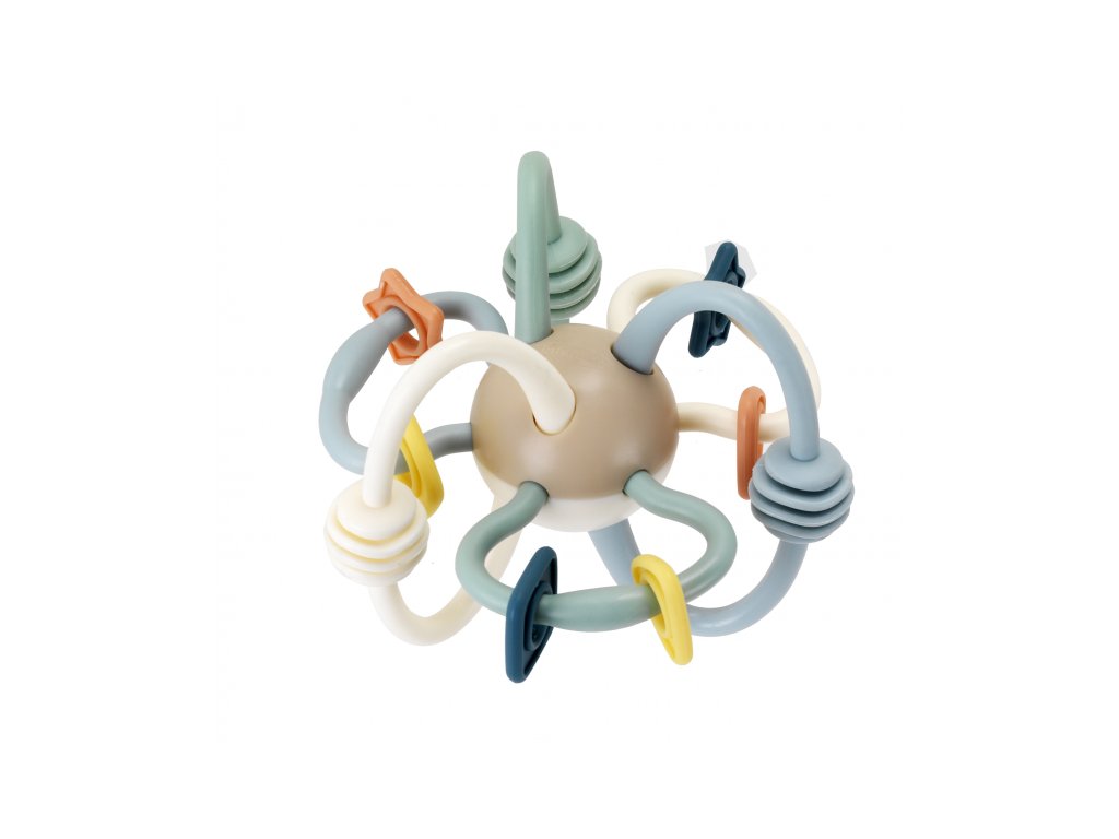 Chrastítko s kousátky Infantino láká miminko k objevování tvarů a textur. Hračka nabízí posuvné korálky a pružné smyčky, při pohybu jemně chrastí a funguje i jako kousátko, které pomáhá při prořezávání prvních zoubků dítěte. Tvar chrastítka je navržen pro snadné uchopení malými dětskými ručičkami. Chrastítko podporuje rozvoj jemné motoriky dítěte i jednotlivých smyslů. Vhodné pro děti od 3 měsíců.