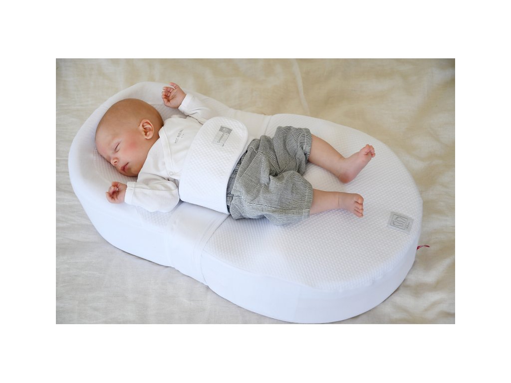 CocoonaBaby Red Castle je ergonomicky tvarovaná podložka podložka na spaní pro děti od narození do 3 měsíců. Podložka svým tvarem umožňuje dítěti ležet v podobné poloze, v jaké se nacházelo před narozením a tím přispívá k jeho klidu a pocitu bezpečí. Poloha dítěte v podložce CocoonBaby s jemným 10° sklonem přispívá k delšímu a klidnějšímu spánku bez refluxních obtíží. Břišní pás neomezuje pohyb rukou a nohou dítěte a zároveň svým jemným tlakem na bříško dítě uklidňuje. Výplň podložky z vysoce prážné pěny se vrací do původního tvaru, nenutí dítě do pevné polohy a podporuje jeho přirozenou motoriku. Podložka byla navržena dětskými fyzioterapeuty a lékaři. Je určena pro použití v dětské postýlce, není vhodná pro použití v košíku, kolébce či kočárku. Přestaňte podložku používat, když se dítě začne snažit otáčet. Rozměry: 69 × 40 × 19 cm Snímatelný bavlněný potah je možno prát v pračce. Vhodné pro děti od narození (od 2,8 kg) do 3 měsíců.