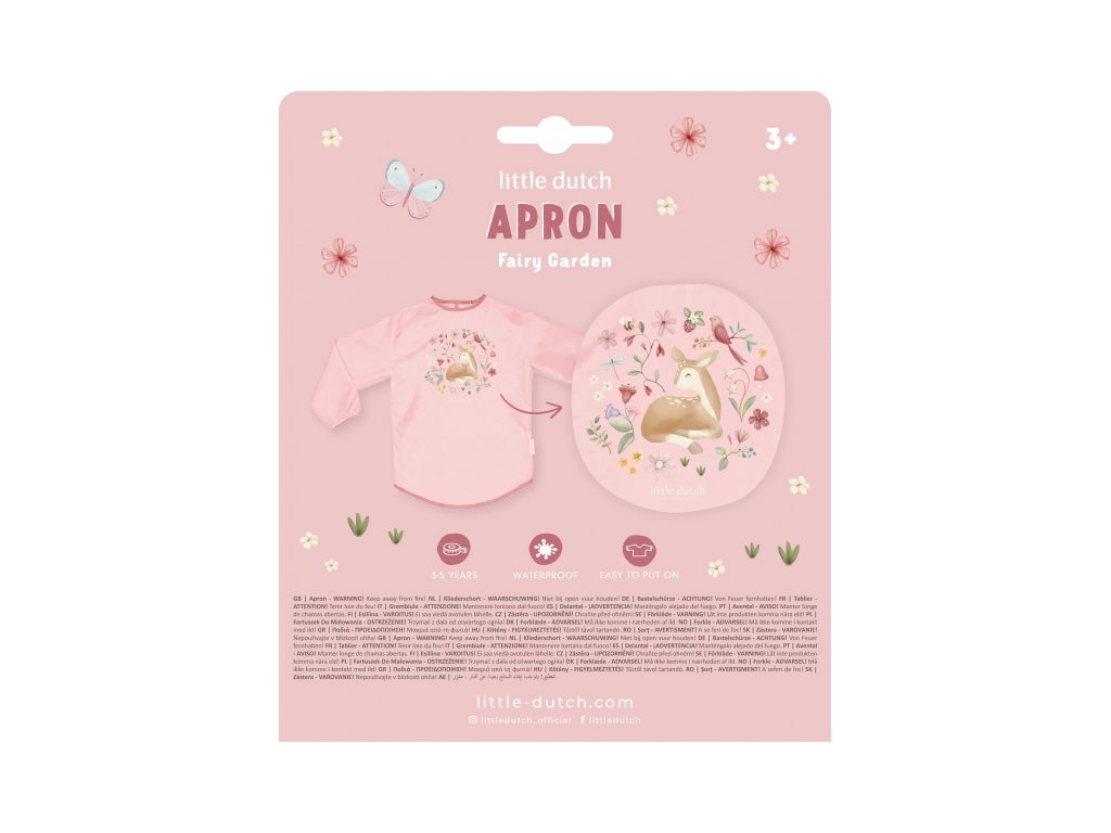 Když se vaše dítě pustí do malování, kreslení či jiného tvoření, barva může snadno skončit kdekoli na jeho oblečení. Tato lehká, voděodolná zástěra s dlouhými rukávy oblečení dítěte bezpečně ochrání. Díky zapínání na suchý zip vzadu a praktickým manžetám s gumičkou na rukávech se zástěra snadno obléká i svléká. Při znečištění stačí zástěru otřít vlhkým hadříkem. Zástěra s krásným potiskem je součástí designové kolekce hraček a doplňků Little Dutch Fairy Garden, inspirované životem na zahradě. Materiál: polypropylen Vhodné pro děti cca od 3 do 5 let.