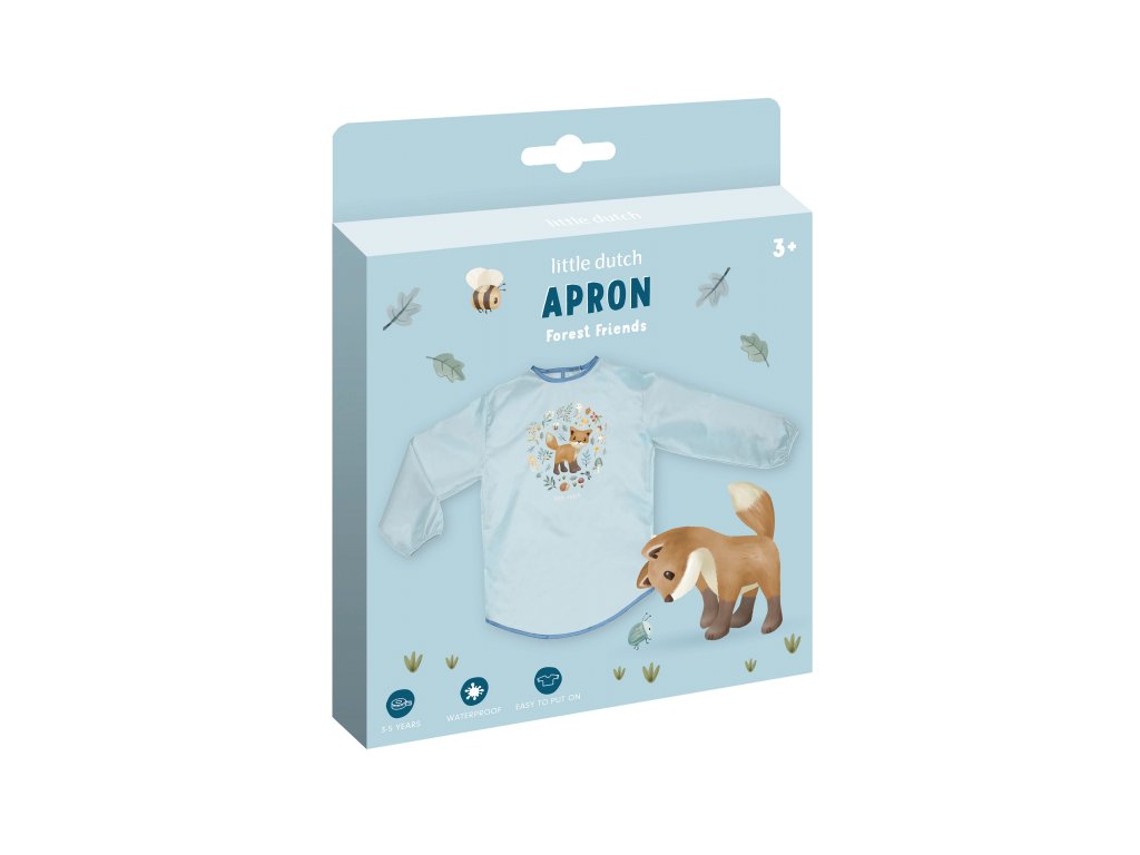 Když se vaše dítě pustí do malování, kreslení či jiného tvoření, barva může snadno skončit kdekoli na jeho oblečení. Tato lehká, voděodolná zástěra s dlouhými rukávy oblečení dítěte bezpečně ochrání. Díky zapínání na suchý zip vzadu a praktickým manžetám s gumičkou na rukávech se zástěra snadno obléká i svléká. Při znečištění stačí zástěru otřít vlhkým hadříkem. Zástěra s krásným potiskem je součástí designové kolekce hraček a doplňků Little Dutch Forest Friends, inspirované životem v lese. Materiál: polypropylen Vhodné pro děti cca od 3 do 5 let.