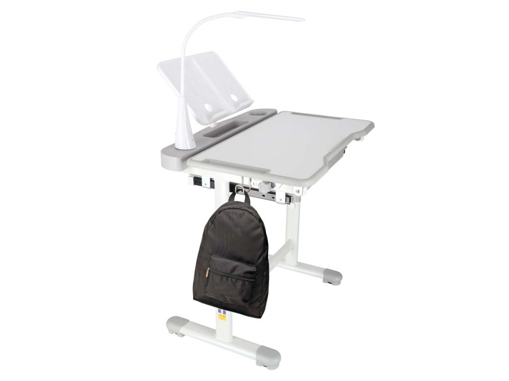 O funkčním využití psacího stolu svědčí četná zařízení, která podporují soustředění a pomáhají organizovat pracovní prostor. Zvedací stůl, výsuvná police s přihrádkami a podpěra na knihy udržují pořádek a umožňují pohodlné používání školních pomůcek a učebních materiálů. K psacímu stolu lze připojit LED osvětlení s USB kabelem. Osvětlí desku stolu a poskytne prostor pro práci ráno i večer.