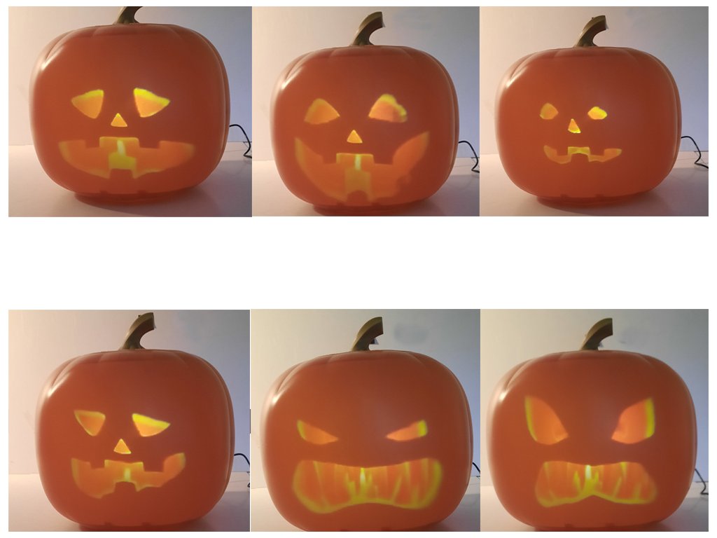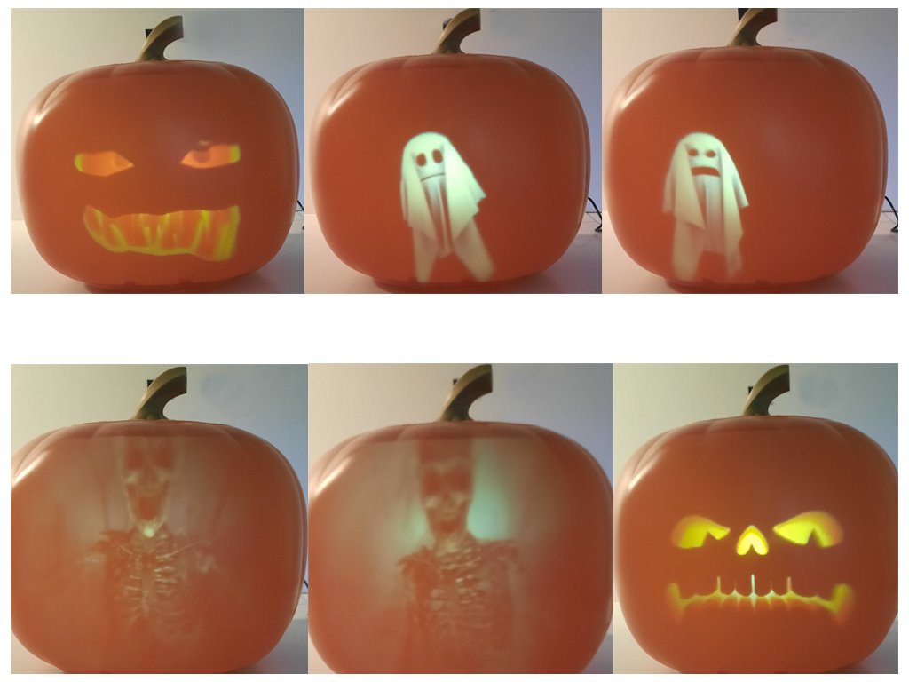 - Animace zahrnují různé obličeje, někdy vtipné a někdy hrozivé, a tanec duchů a kostlivců.