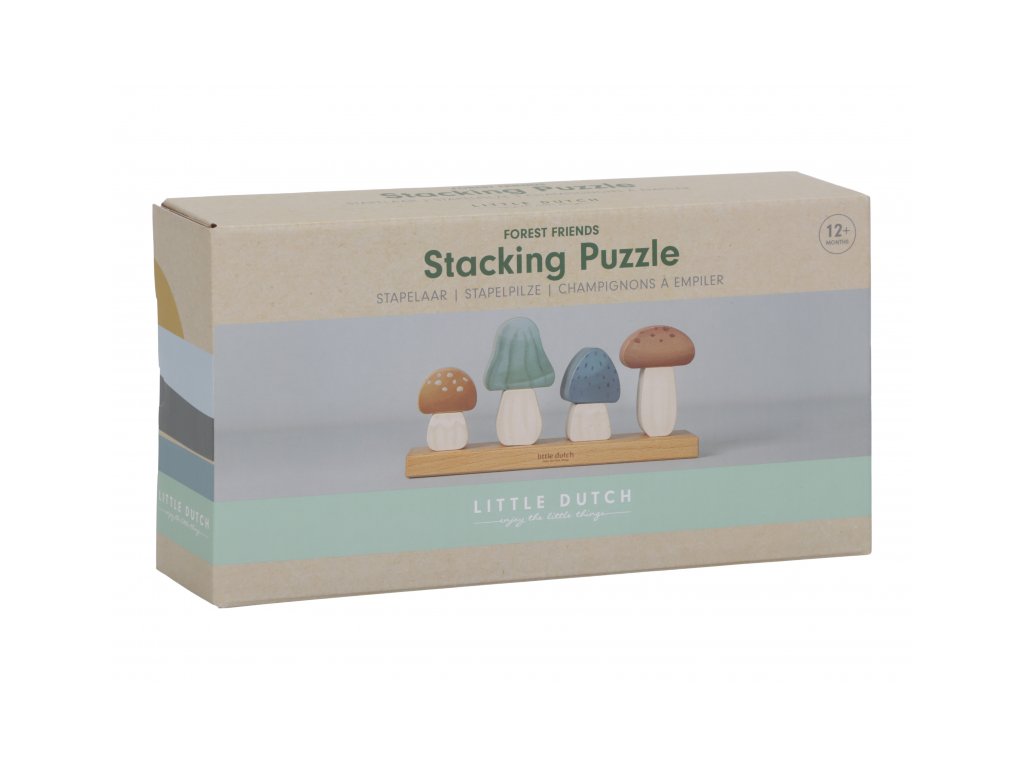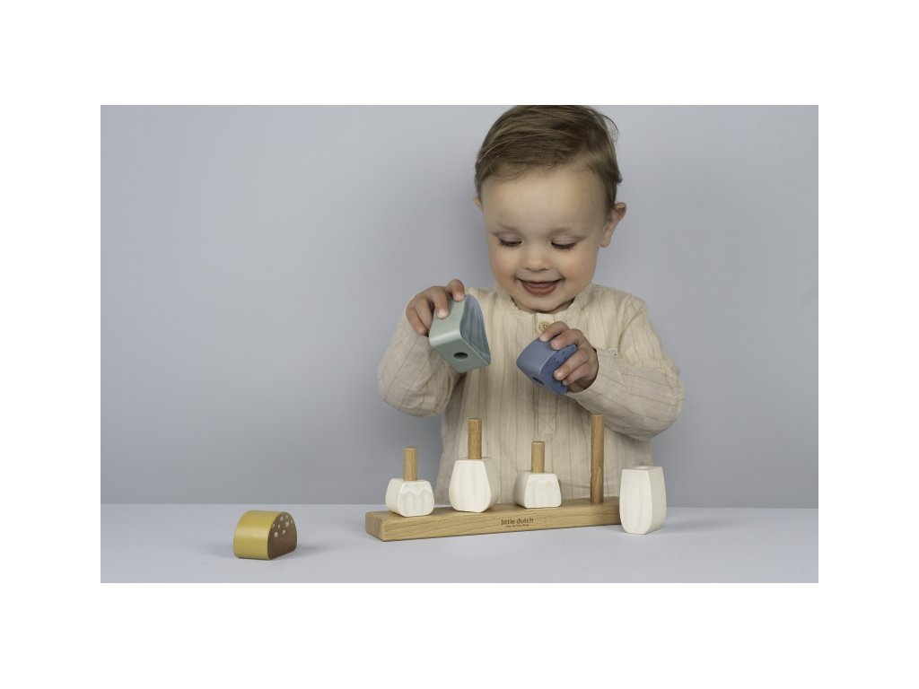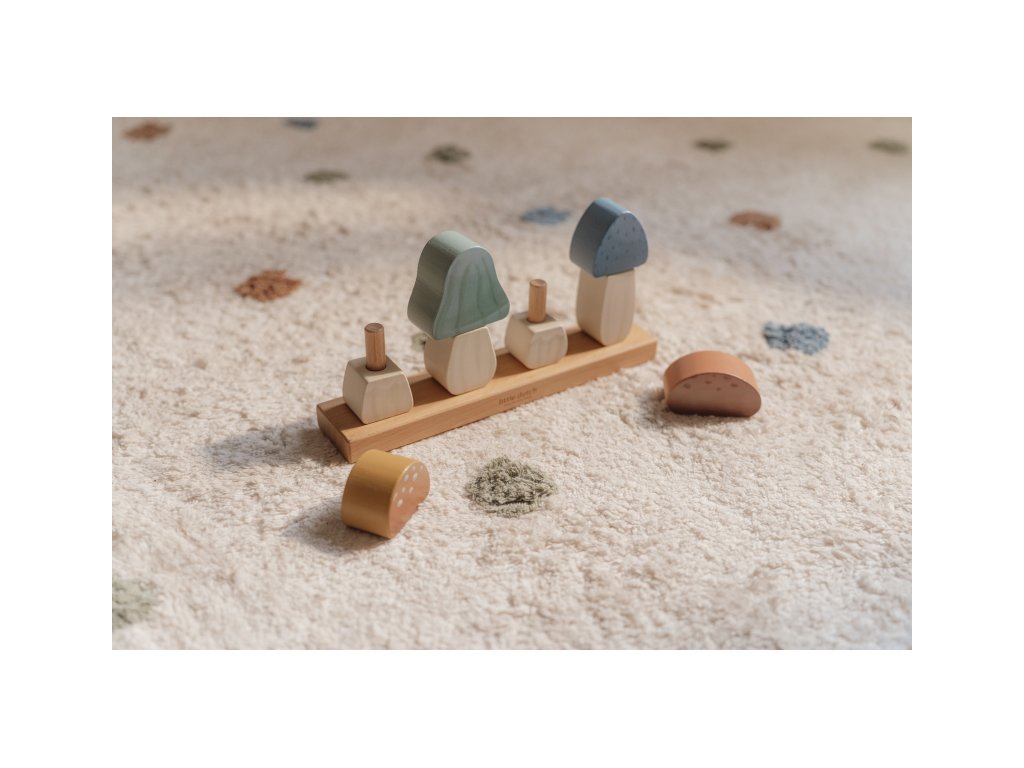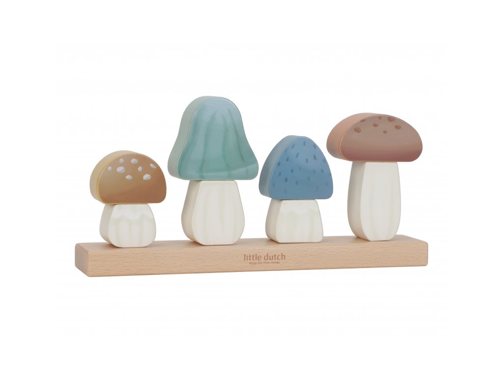 Krásné dřevěné houby jsou tvořeny dvěma díly - kloboučkem a nohou, které se postupně navlékají na stonek na základně. Kloboučky a nohy jsou libovolně kombinovatelné a je tak možné tvořit pokaždé jiné varianty houbiček. Hračka pomáhá rozvíjet jemnou motoriku dítěte a může sloužit i jako krásná dekorace v dětském pokoji. Hračka je součástí designové kolekce hraček Little Dutch Forest Friends inspirované životem v lese. Vyrobeno z dřeva certifikovaného FSC. Rozměry: 24,6 x 5 x 13 cm Vhodné pro děti od 12 měsíců.