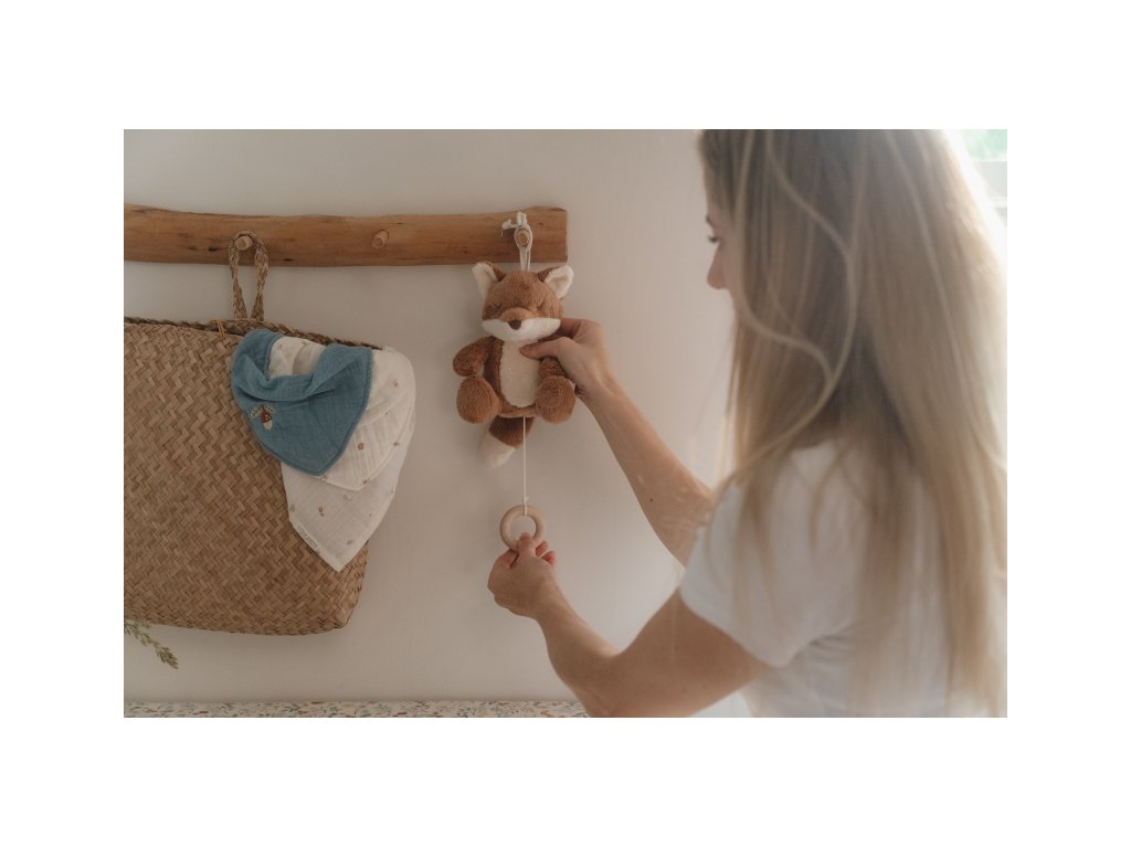 Závěsná hračka v podobě roztomilé lišky v sobě skrývá natahovací hudební box s příjemnou ukolébavkou, která vaše miminko uklidní a pomůže mu usnout. Hračku snadno připevníte k postýlce či komodě. Hračka je součástí designové kolekce hraček a doplňků Little Dutch Forest Friends inspirované životem v lese. Rozměry: 21 x 15 x 11 cm Vhodné pro děti od narození.