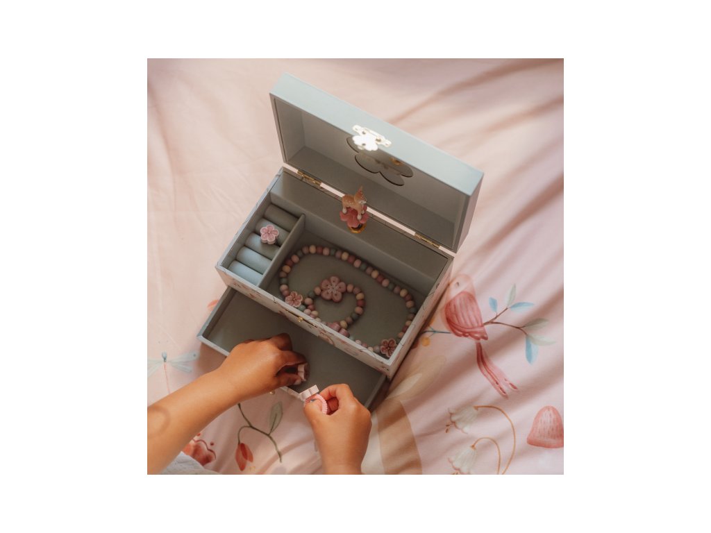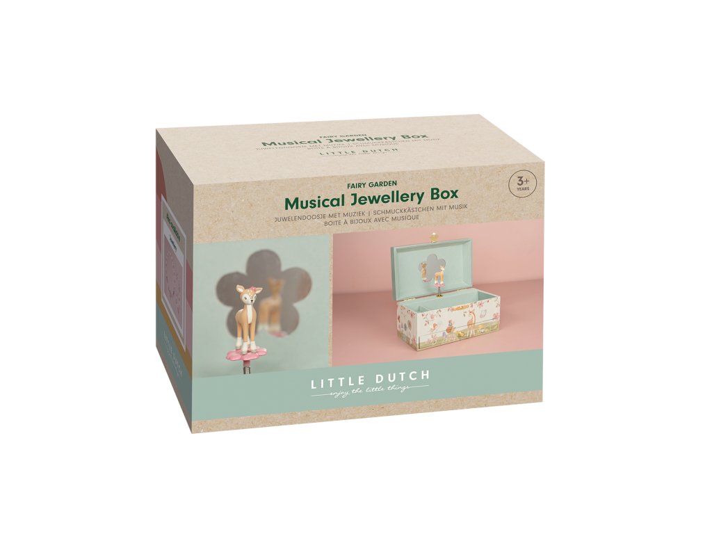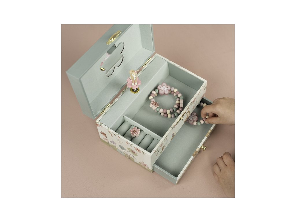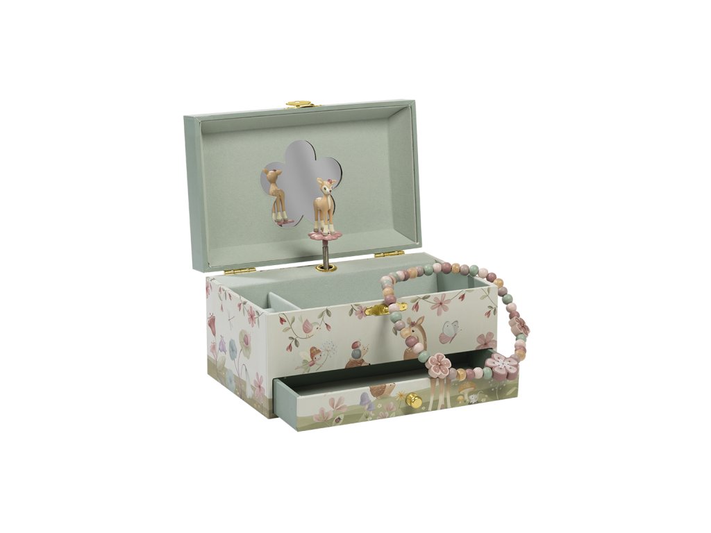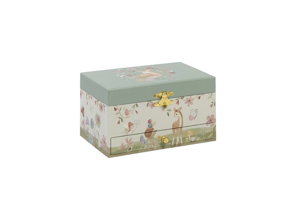 Krásná šperkovnice se zrcátkem a hudebním boxem, který po natažení hraje něžnou melodii. Vaše malá parádnice si do šperkovnice s potiskem motivů ze života v lese může ukládat své šperky a jiné vzácné drobnosti. Šperkovnice je součástí designové kolekce hraček a doplňků Little Dutch Forest Friends inspirované životem v lese. Rozměry: 10 x 10,4 x 18 cm Vhodné pro děti od 3 let.