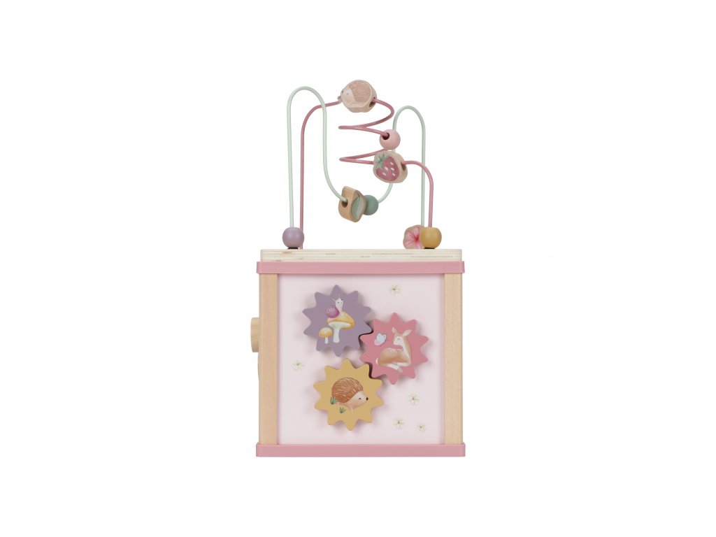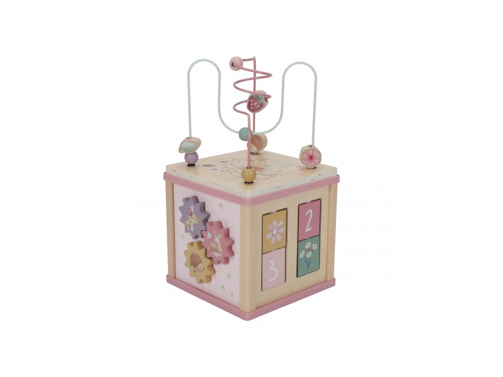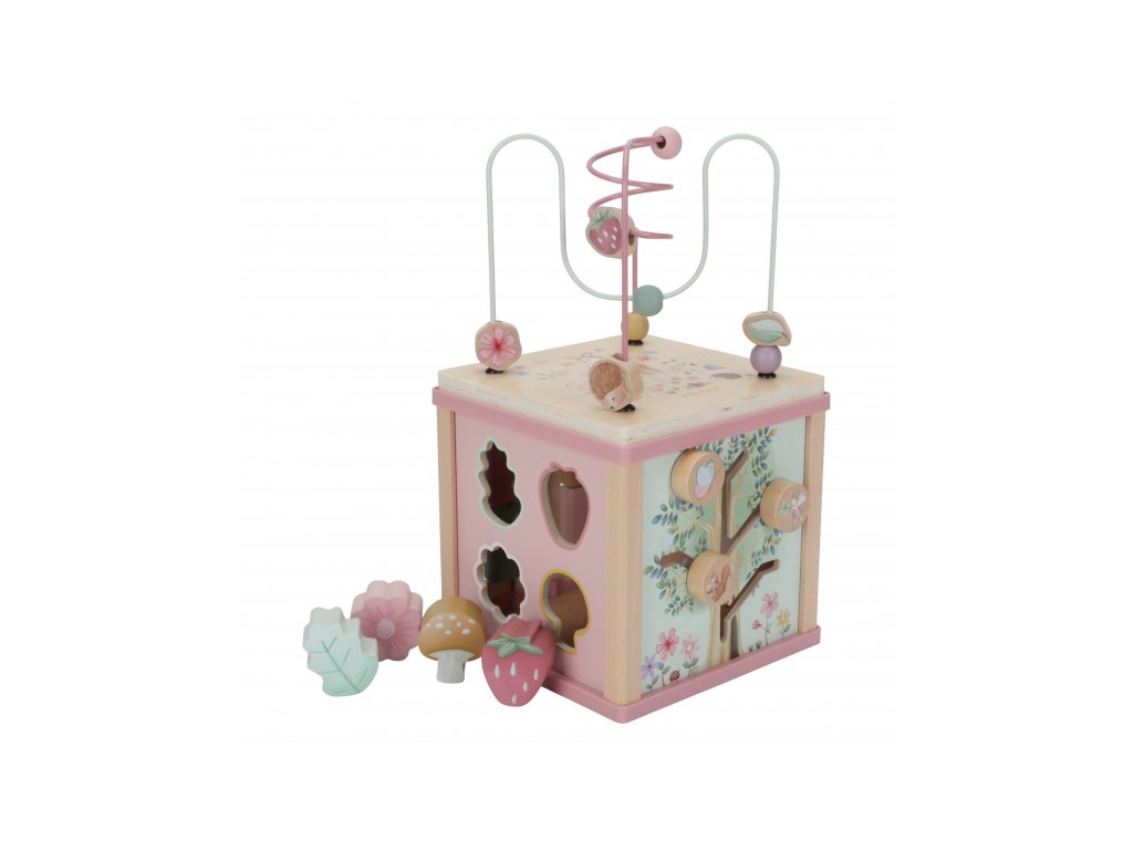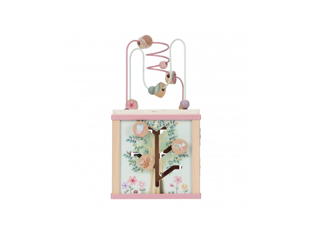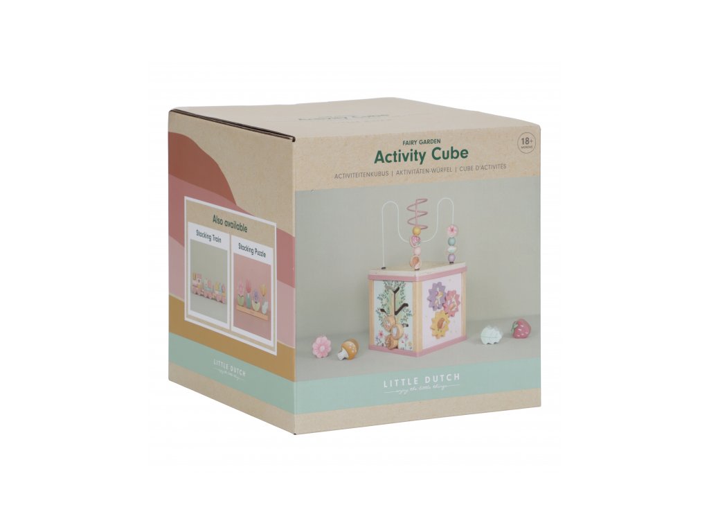 Krásná dřevěná kostka s aktivitami a motivy ze života na zahradě vzbuzuje u dětí zvědavost a poskytuje jim spoustu zábavy. Jednotlivé strany kostky obsahují nabízí různorodé aktivity - např. třídění tvarů, rotující převody, hádanky či spirály s posuvnými korálky. Hračka pomáhá rozvíjet jemnou motoriku i kreativitu dítěte. Hračka je součástí designové kolekce hraček a doplňků Little Dutch Fairy Garden inspirované životem na zahradě. Vyrobeno z dřeva certifikovaného FSC. Rozměry: 20 x 20 x 40 cm Vhodné pro děti od 18 měsíců.