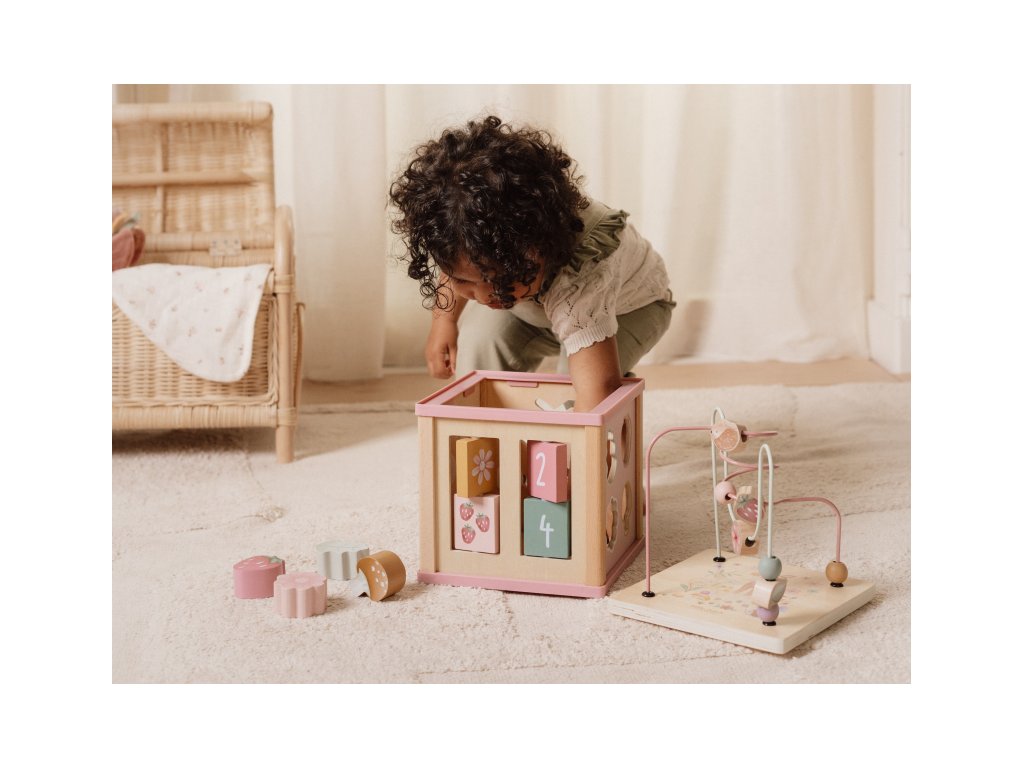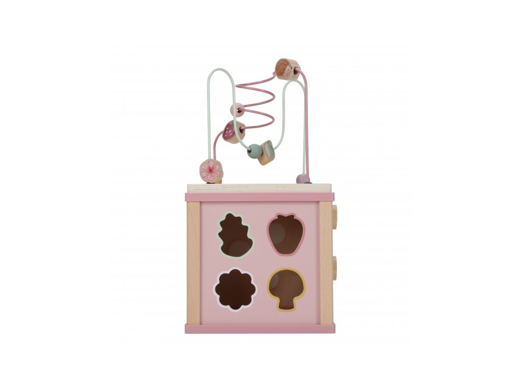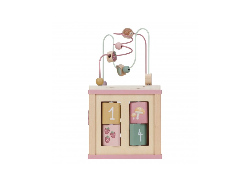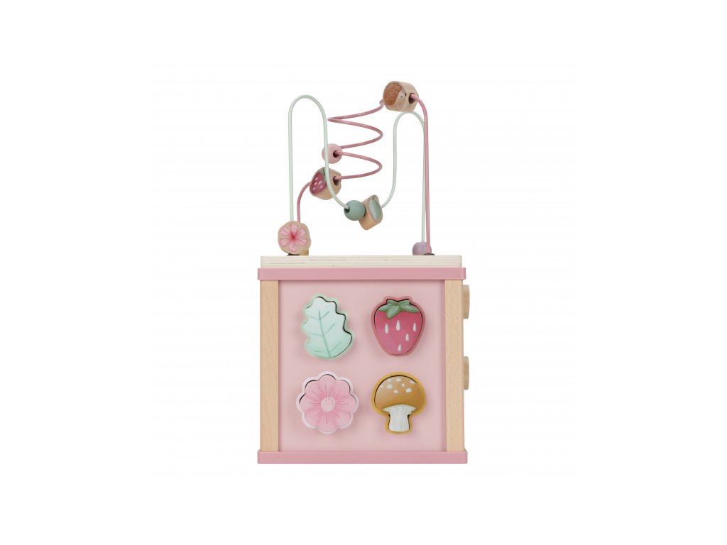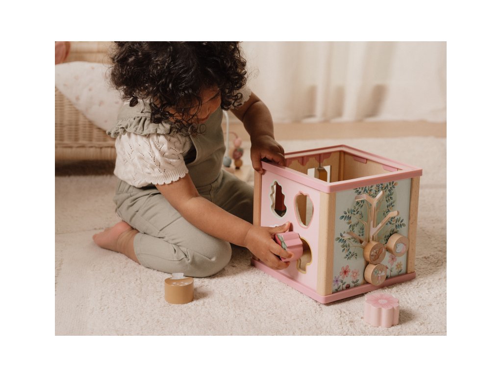 Krásná dřevěná kostka s aktivitami a motivy ze života na zahradě vzbuzuje u dětí zvědavost a poskytuje jim spoustu zábavy. Jednotlivé strany kostky obsahují nabízí různorodé aktivity - např. třídění tvarů, rotující převody, hádanky či spirály s posuvnými korálky. Hračka pomáhá rozvíjet jemnou motoriku i kreativitu dítěte. Hračka je součástí designové kolekce hraček a doplňků Little Dutch Fairy Garden inspirované životem na zahradě. Vyrobeno z dřeva certifikovaného FSC. Rozměry: 20 x 20 x 40 cm Vhodné pro děti od 18 měsíců.