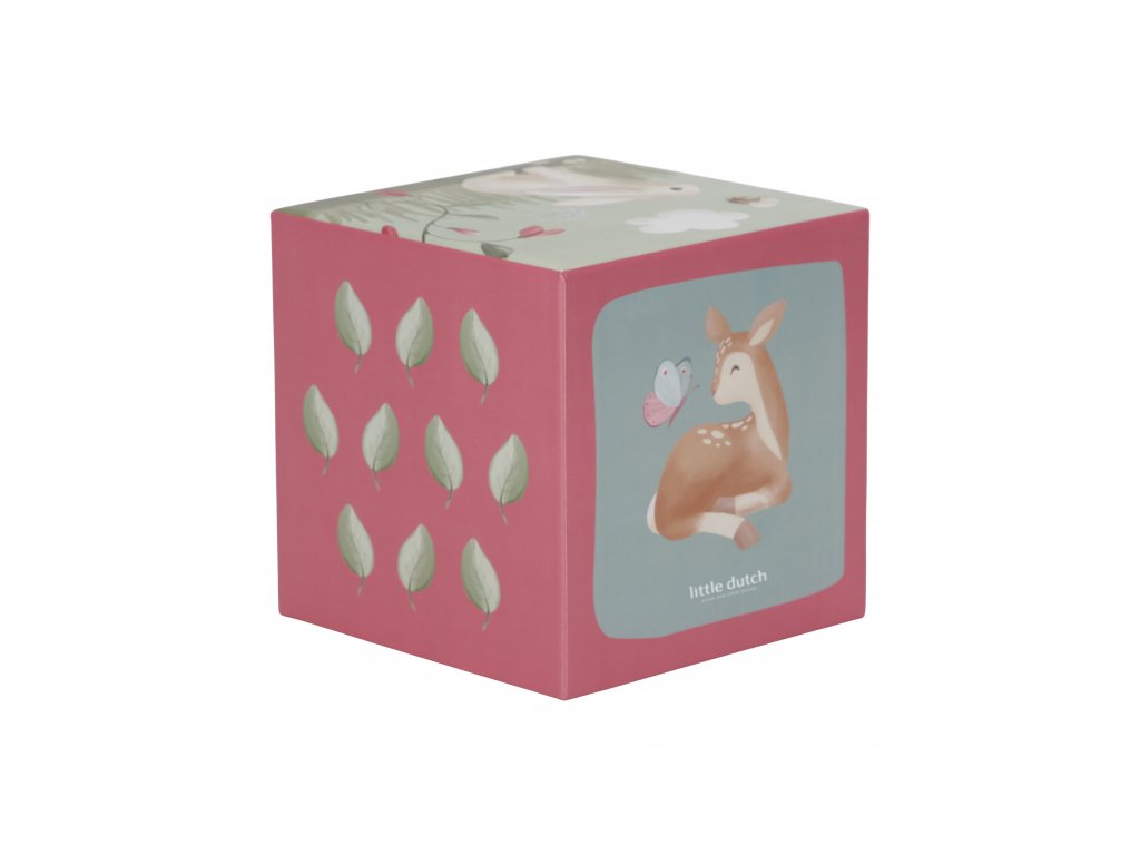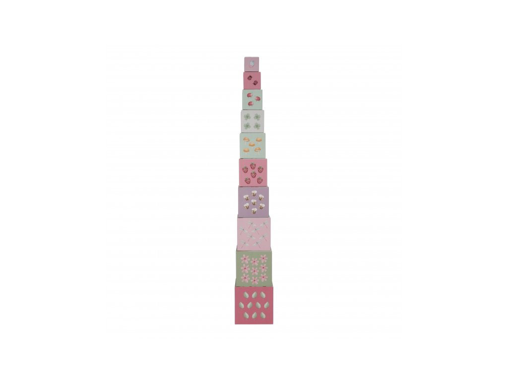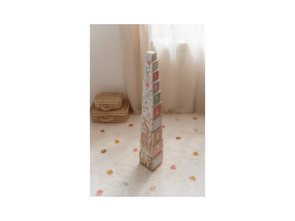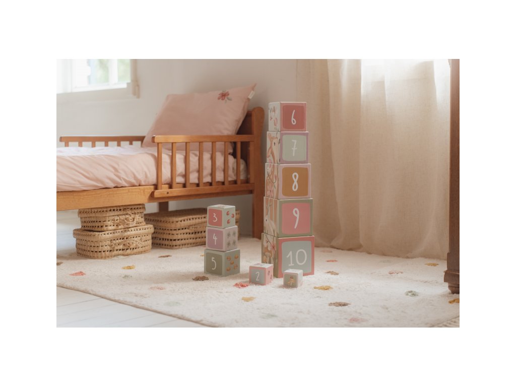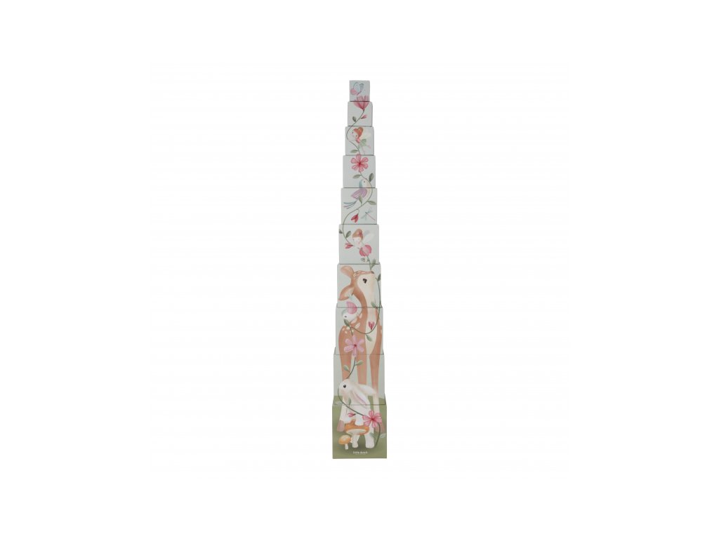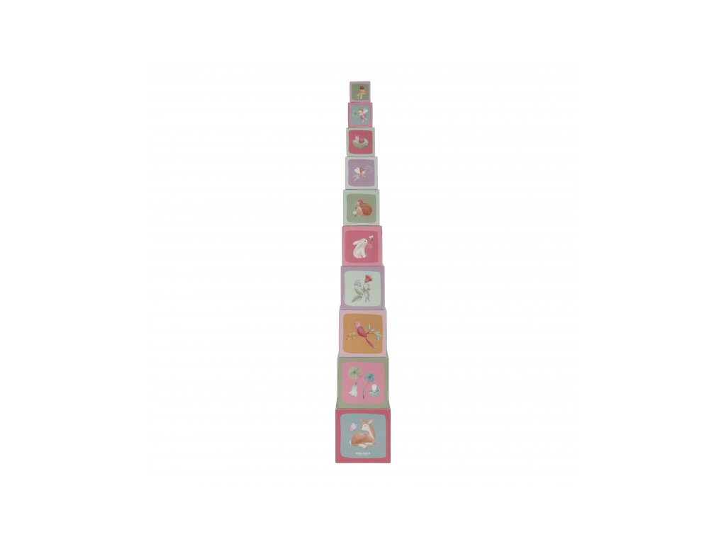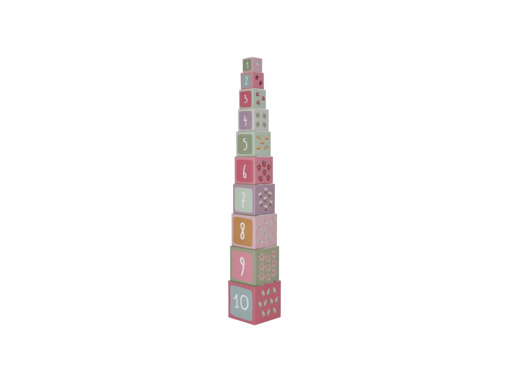 Barevné kartonové kostky s krásnými ilustracemi motivů ze života na zahradě. Nechte vaše dítě kostky skládat na sebe do vysoké věže nebo vedle sebe podle velikosti. Ve starším věku se dítě s pomocí očíslovaných kostek může hravým způsobem učit počítat i rozpoznávat číslice. Nejmenší kostka má 5 cm a největší má 14 cm. Po skončení hraní kostky snadno uložíte složením do sebe. Hračka je součástí designové kolekce hraček a doplňků Little Dutch Fairy Garden inspirované životem na zahradě. Rozměry věže: 14 x 14 x 95 cm Vhodné pro děti od 18 měsíců.