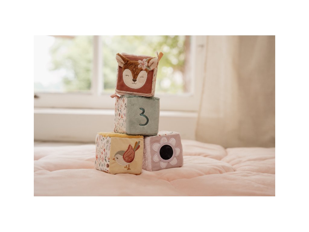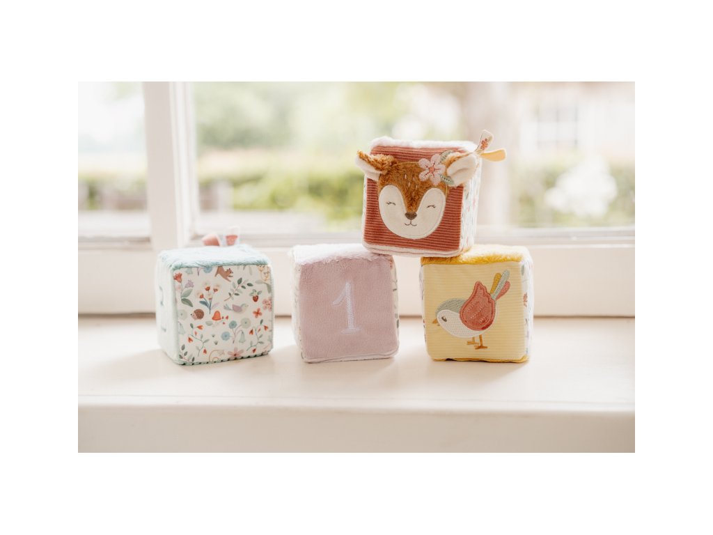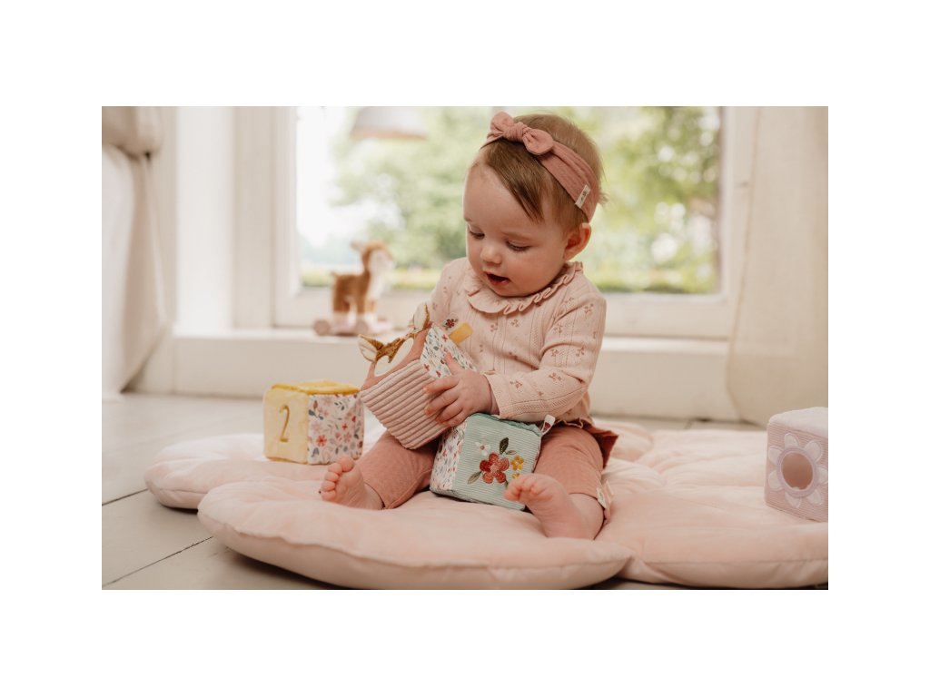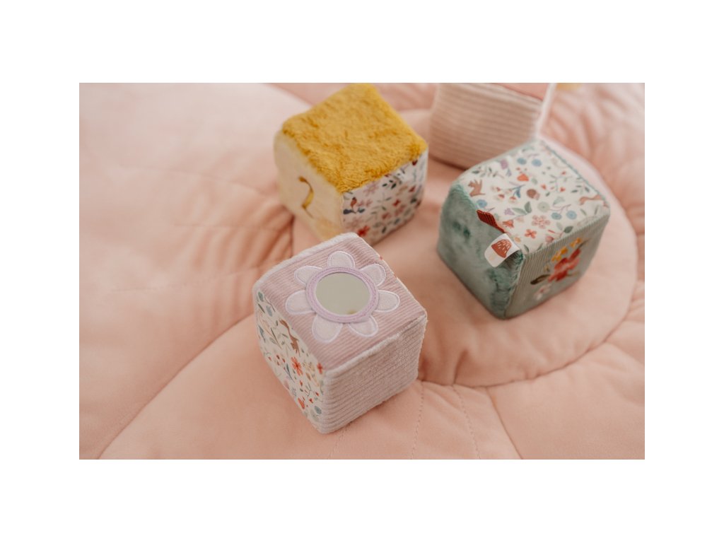 Měkké textilní kostky s krásnými motivy ze života na zahradě jsou díky svému provedení snadno uchopitelné malými dětskými ručičkami. Různorodé textury a vzory lákají dítě ke zkoumání, kostky navíc při pohybu jemně cinkají a chrastí. Hračka je součástí designové kolekce hraček a doplňků Little Dutch Fairy Garden inspirované životem na zahradě. Rozměry kostky: 8 x 8 x 8 cm Složení: 100% polyester Vhodné pro děti od narození.