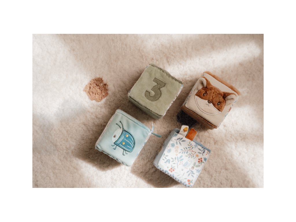Měkké textilní kostky s krásnými motivy ze života v lese jsou díky svému provedení snadno uchopitelné malými dětskými ručičkami. Různorodé textury a vzory lákají dítě ke zkoumání, kostky navíc při pohybu jemně cinkají a chrastí. Hračka je součástí designové kolekce hraček Little Dutch Forest Friends inspirované životem v lese. Rozměry kostky: 8 x 8 x 8 cm Složení: 100% polyester Vhodné pro děti od narození.