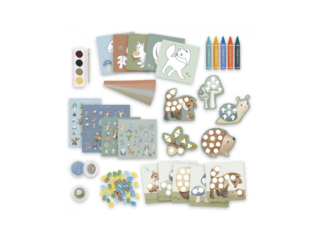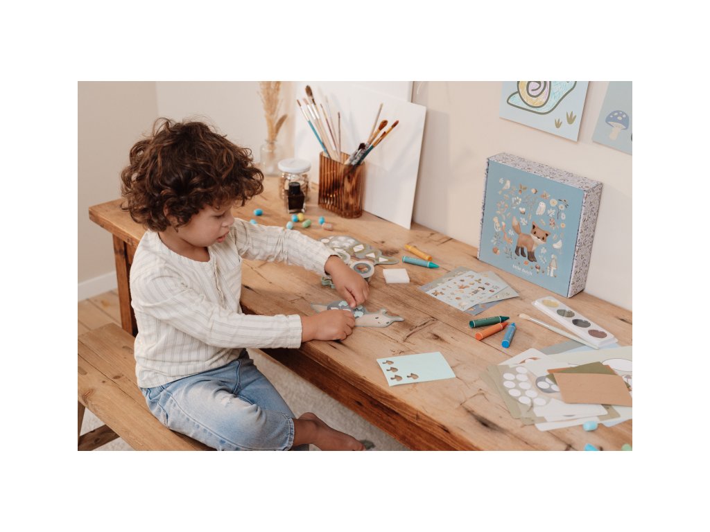 Extra velká kreativní sada obsahuje potřeby pro různé druhy výtvarného tvoření včetně pastelek, vodovek, samolepek, modelíny apod. Vše je zabalené v krásném boxu, do kterého vše po skončení hry snadno uklidíte. Kreativní sada vaše děti nejen zabaví, ale pomáhá i rozvíjet jejich jemnou motoriku a stimluje kreativní myšlení. Sada je součástí designové kolekce hraček a doplňků Little Dutch Forest Friends inspirované životem v lese. Rozměry: 24 x 24 x 6 cm Vhodné pro děti od 3 let.