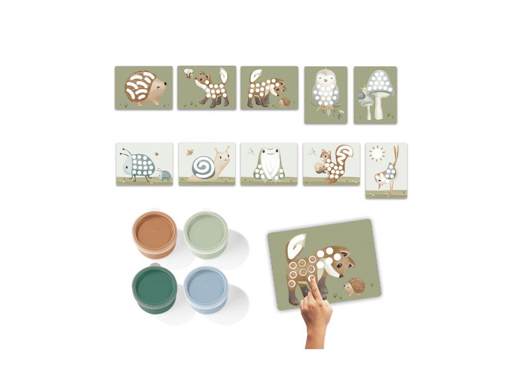 Sada pro malování prsty v krásném provedení umožní vašemu dítěti popustit uzdu své kreativitě. Sada obsahuje 4 jemné pastelové barvy a předtištěné kartičky s potiskem motivů ze života v lese. Hraní s prstvoými barvami stimuluje rozvoj jemné motoriky i kreativitu dítěte. Snadno omyvatelné barvy jsou bezpečné pro pokožku dítěte. Sada je součástí designové kolekce hraček a doplňků Little Dutch Forest Friends inspirované životem v lese. Rozměry: 22 x 20,5 x 3,5 cm Vhodné pro děti od 3 let.