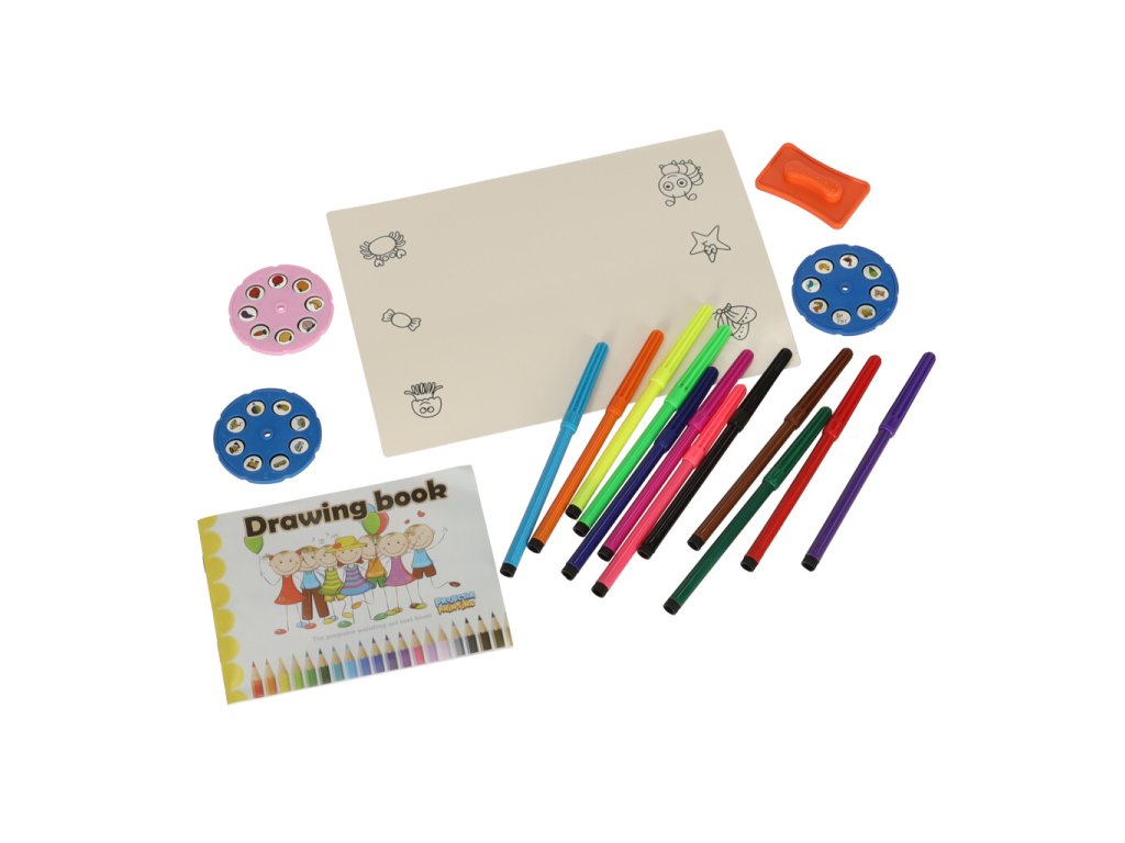 Kreativní způsob trávení volného času! Kreslení a malování jsou činnosti, které jsou u dětí vždy oblíbené. A není na tom nic divného - umožňují jim kreativně vyjádřit své emoce, sny nebo jim prostě poskytují příjemnou zábavu. Nicméně, jak už to v životě bývá, i oblíbená činnost se může časem stát nudnou nebo může chybět inspirace pro nové obrázky. Dětský zpětný projektor je pro takové chvíle ideální! - Nejenže díky němu budou tvůrčí malování zábavnější, ale vaše ratolest se díky němu bude cítit jako skutečný kreslíř pracující u profesionálního kreslicího stolu. - Projektor je zcela vhodný pro děti - dodává se v jasné, poutavé barvě a ve tvaru žirafy. Může mu nějaké batole odolat? Pravděpodobně ne! Součástí sady jsou: - Barevné fixy - Brožura na kreslení Kreslit však můžete i na stíratelnou podložku, která je umístěna přímo na stole. A aby bylo mytí obrázků bezproblémové, sada se dodává také se stíratelnou houbičkou. Jak přesně ale kreslící projektor funguje? 1. Nejprve jej musíte sestavit a vložit do něj 3 baterie AA. 2. Pak vyberte jeden ze tří obrázkových disků a vložte ho do obličeje žirafy. 3. Když stisknete spínač umístěný na krku žirafy, projektor se rozsvítí a odhalí vybraný obrázek z disku. A nyní můžete začít malovat! Obrázky lze měnit otáčením disku. Bude zajímavou výzvou pokusit se nakreslit všechny obrázky ze tří disků. Půjde do toho vaše ratolest? Kreslení je skvělé pro manuální dovednosti vašeho dítěte - zlepšuje přesnost ruky i prstů. A kreativní činnosti podněcují představivost k vytváření nových a zajímavých děl. Obsah sady:- Stůl s projektorem