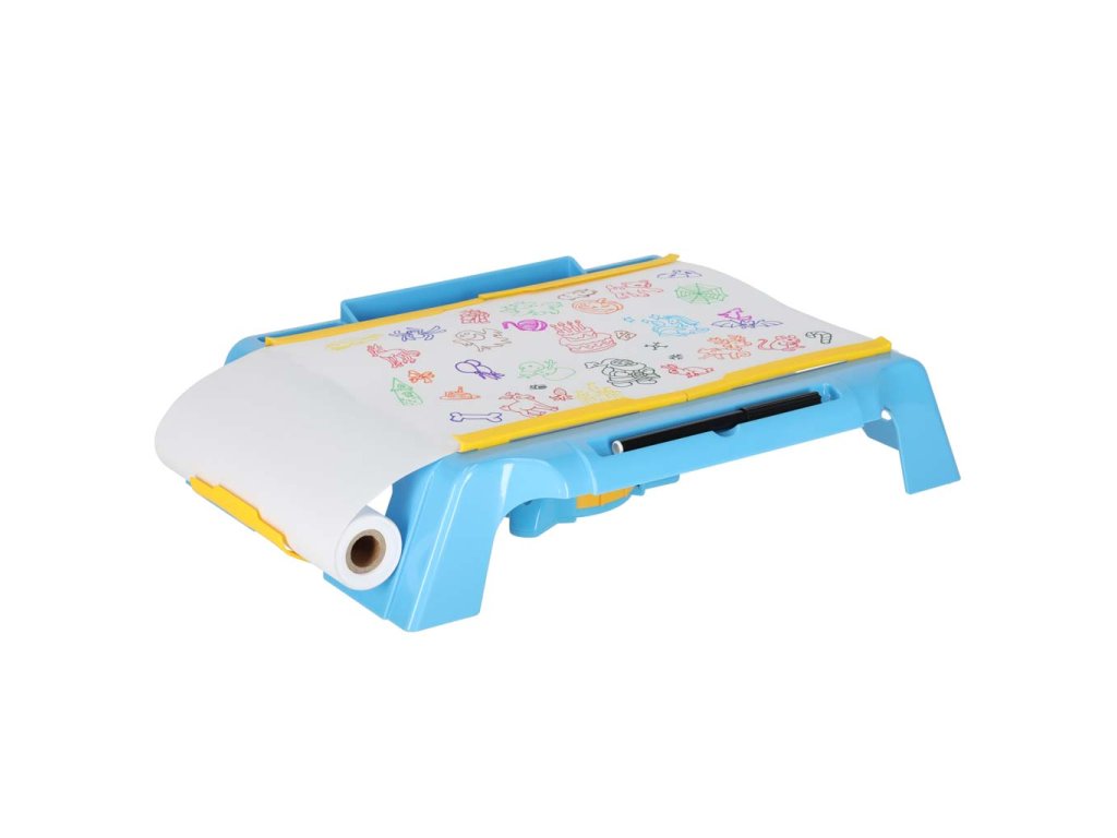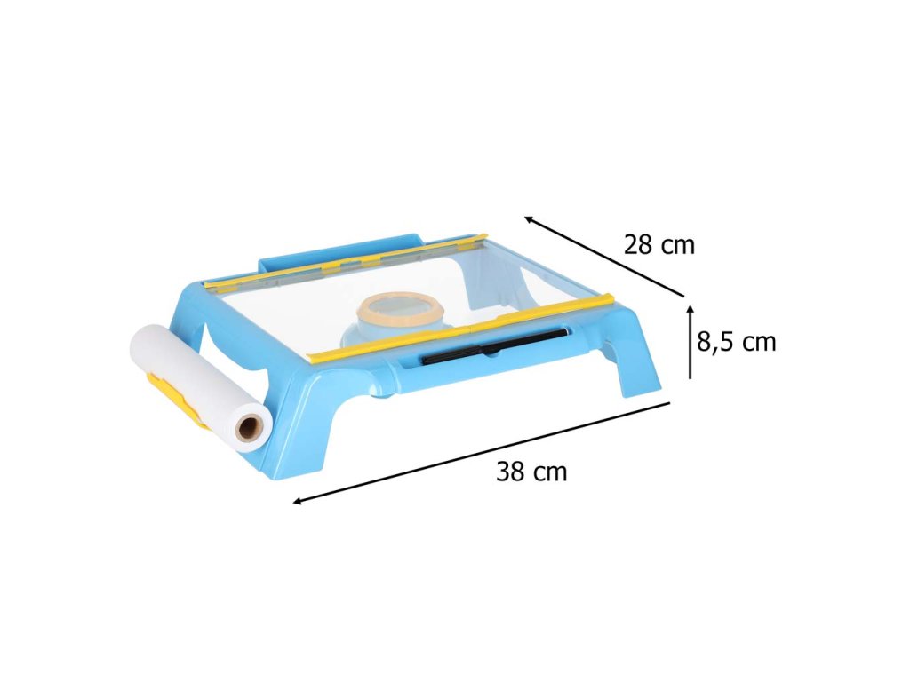 V sadě najdete stabilní kreslicí stolek, který je navržen s ohledem na pohodlí a bezpečnost těch nejmenších. Stůl s projektorem je kombinací funkčnosti azábavy - se stolem může vaše dítě tvořit, kdekoli se mu zachce! Sada na kreslení s projektorem obsahuje vše, co potřebujete pro tvůrčí dobrodružství: roli kreslicího papíru (vejde se do formátu A4), 12 barevných fixů a stejný počet pastelek, sadu 72 obrázků ke kreslení v připravených šablonách, které vám pomohou při učení. Zábava je snadná - stačí vložit diapozitiv, nastavit projektor a můžete si začít hrát!