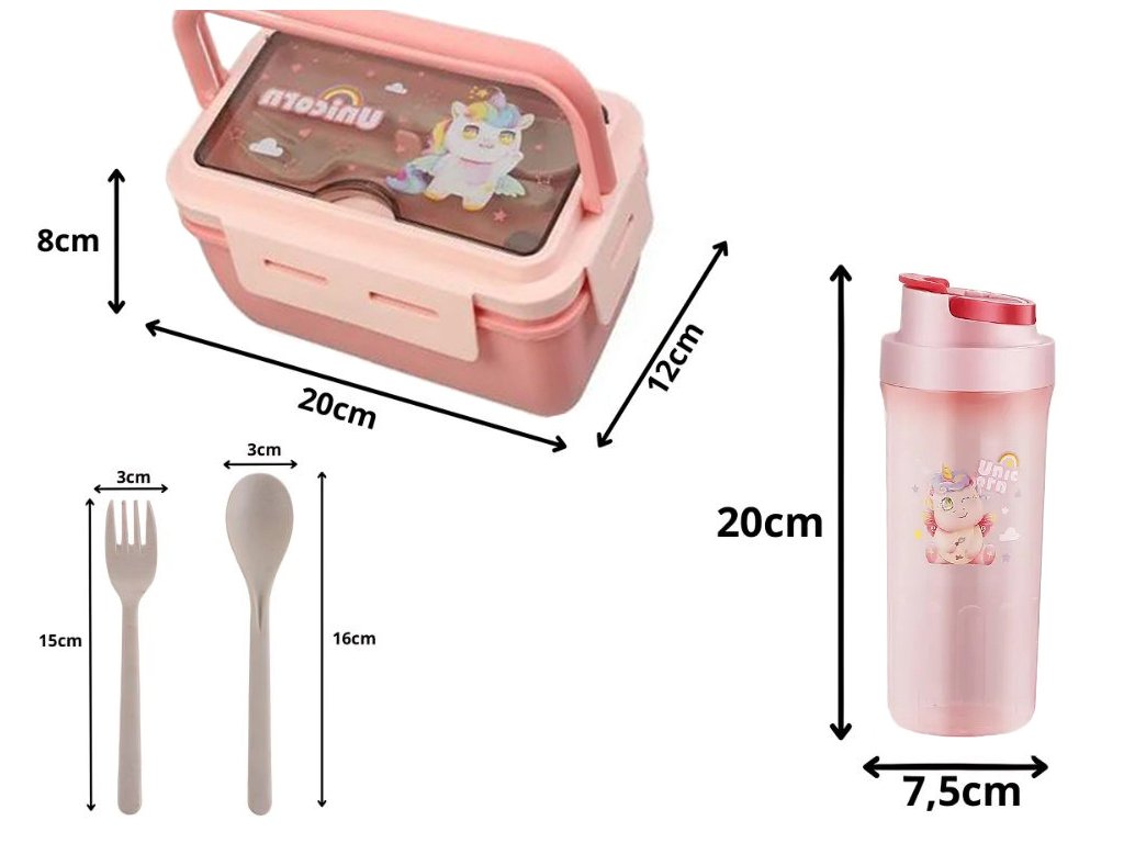 Lunchbox na oběd s příbory a láhví sada - růžový unicorn