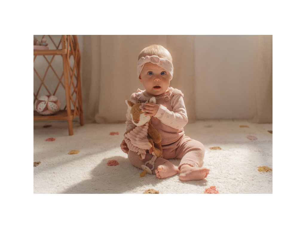 Plyšový muchláček v podobě něžné srnky a úchytem pro šidítko láká ke hraní i mazlení. Muchláček je je vyroben z velmi jemného a příjemného materiálu a je ideální jako společník do postýlky pro klidné usínání. Hračka je součástí designové kolekce hraček Little Dutch Fairy Garden inspirované životem na zahradě. Rozměry: 23 x 31 x 8 cm Vhodné pro děti od narození.