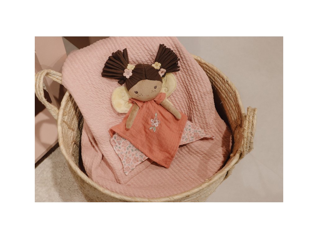 Textilní muchláček v podobě něžné víly Evi láká ke hraní i mazlení. Muchláček je je vyroben z velmi jemného a příjemného materiálu a je ideální jako společník do postýlky pro klidné usínání. Hračka je součástí designové kolekce hraček Little Dutch Fairy Garden inspirované životem na zahradě. Vhodné pro děti od narození.