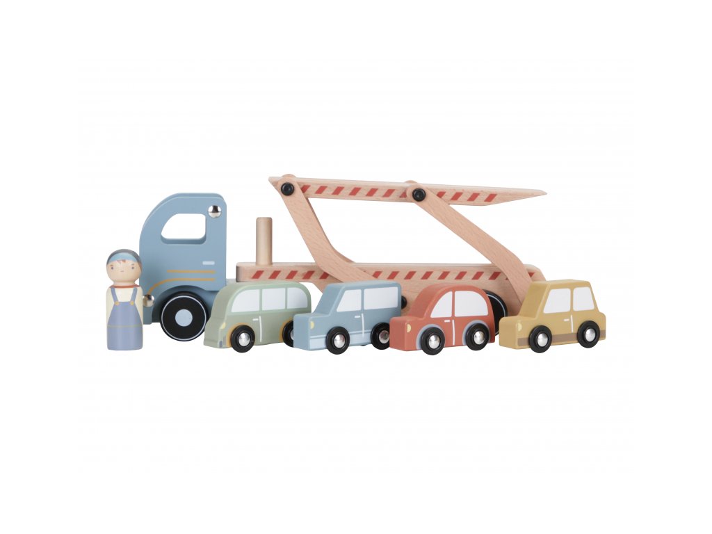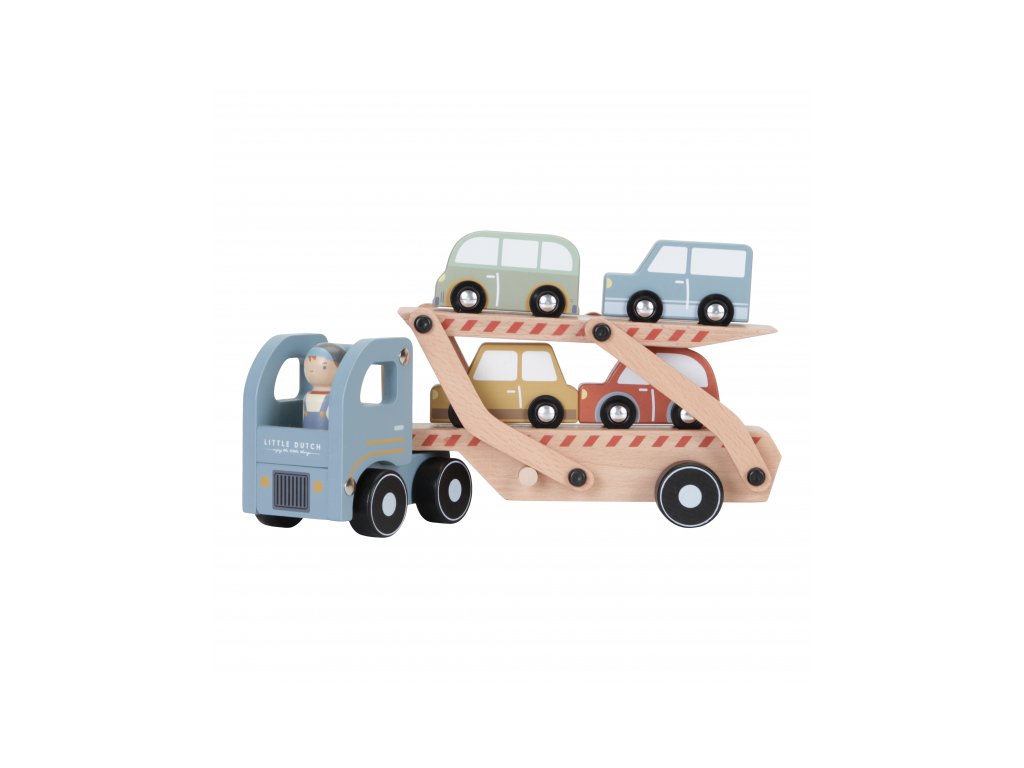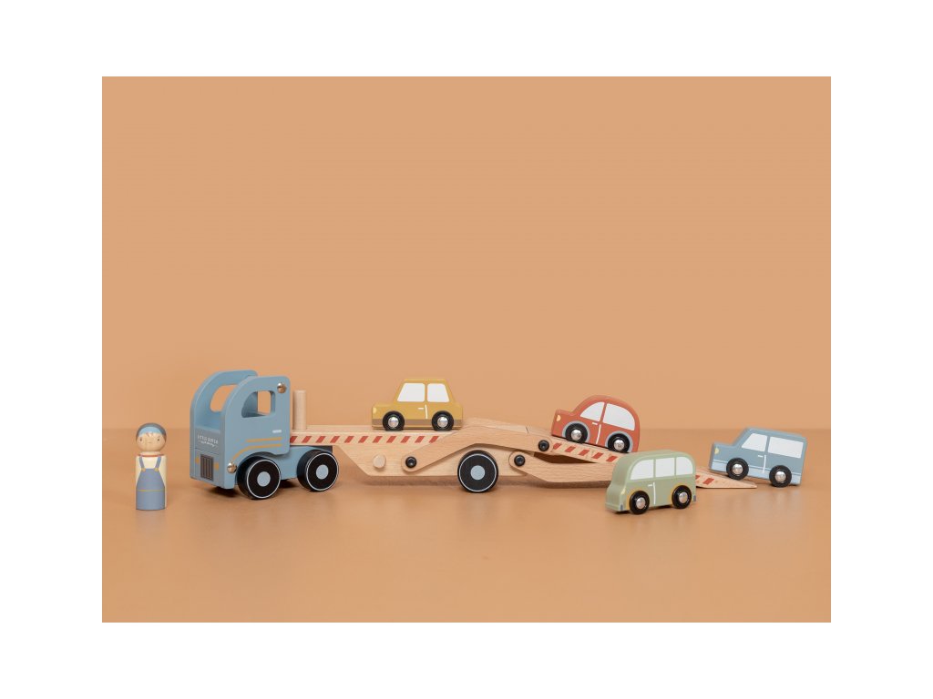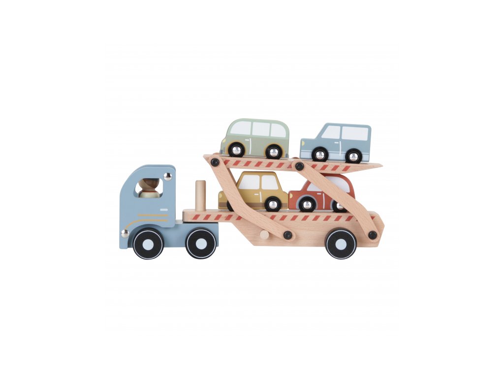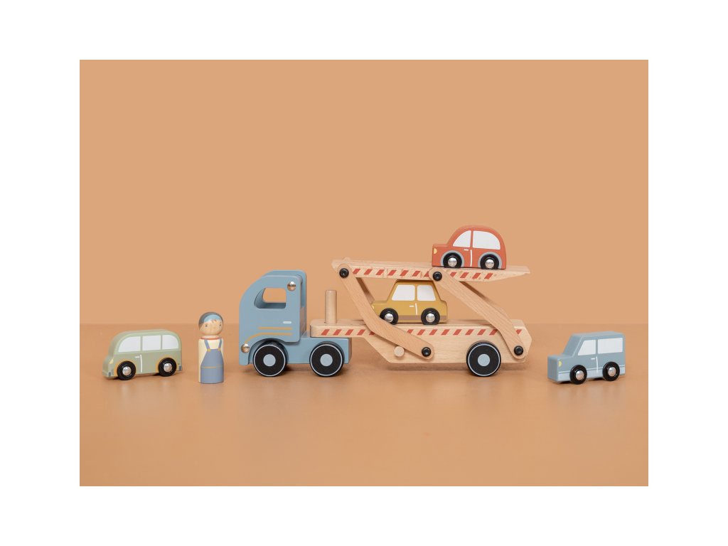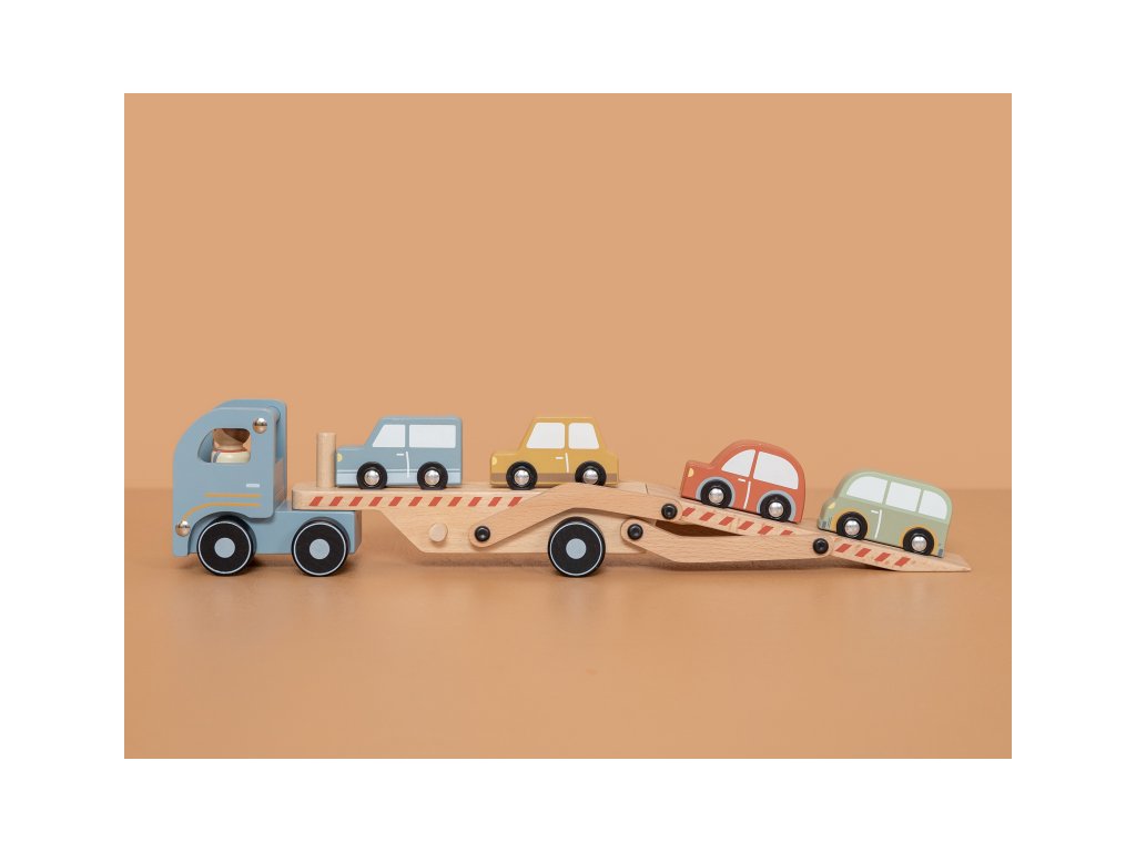 Dřevěný kamion se 4 auty je tou pravou hračkou pro všechny malé řidiče. Sklápěcí nákladní plocha umožní autům pohodlně najet na kamion a stejně pohodlně z něj opět sjet. Rozměry: 29 x 15 x 8 cm Vhodné pro děti od 18 měsíců.