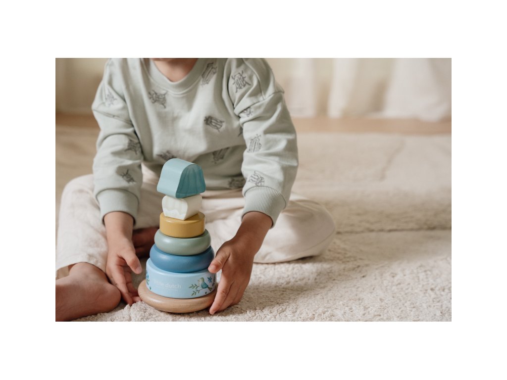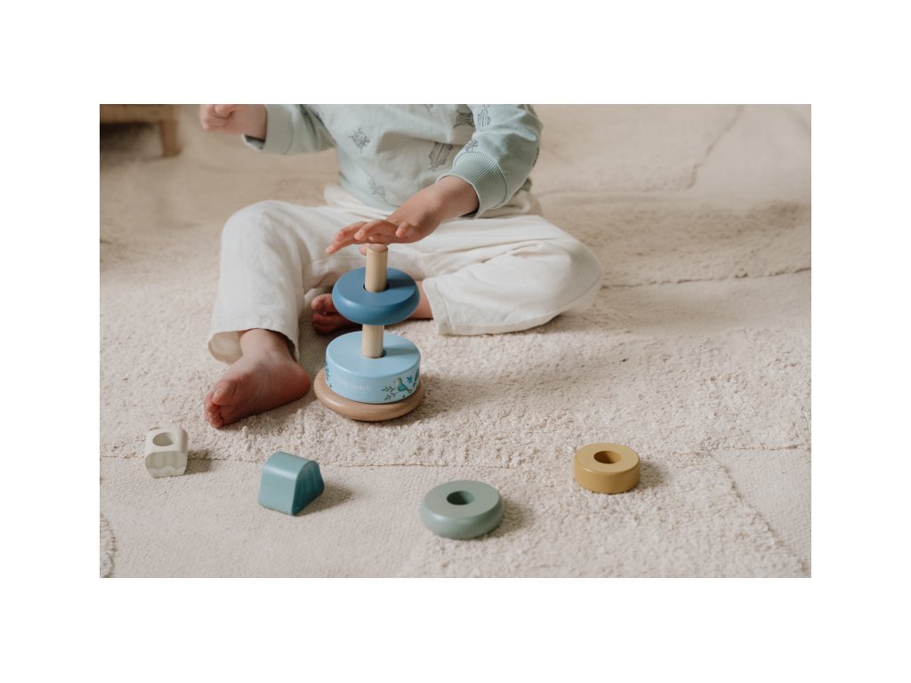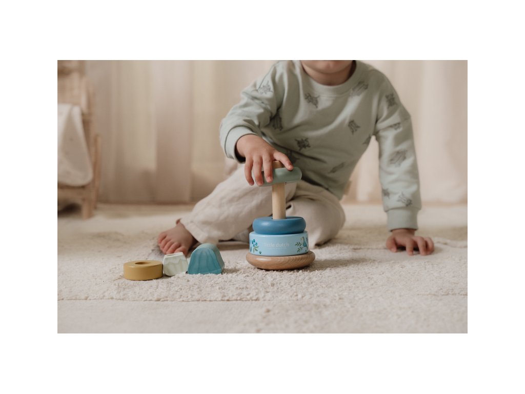 Hravé dřevěné nasazovací kroužky pro děti jsou navrženy tak, aby rozvíjely jejich koordinaci rukou a očí zábavnou a praktickou hrou. Děti se snaží umístit dřevěné kroužky ve správném pořadí a vytvořit z nich pyramidu. To je docela výzva, protože pyramida má půlkulatou základnu a tak se kýve na všechny strany! Hračka je součástí designové kolekce hraček a doplňků Little Dutch Forest Friends inspirované životem v lese. Vyrobeno z dřeva certifikovaného FSC. Rozměry: 10 x 10 x 19 cm Vhodné pro děti od 12 měsíců.