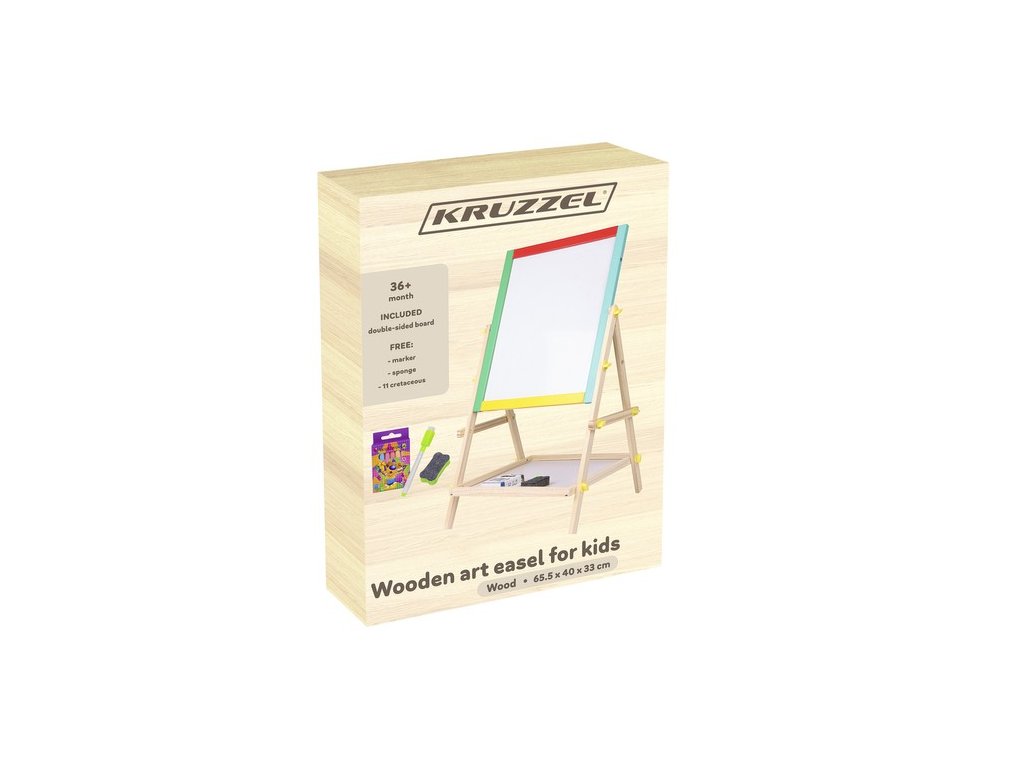 Sada obsahuje motýlkové šrouby, které umožňují pohodlnou změnu polohy. Dřevěný rám Rám multifunkční výukové tabule je celý ze dřeva. Každá část byla natřena jinou barvou – žlutou, zelenou, modrou a červenou. Všechny části jsou dokonale vyleštěné a bezpečné pro děti. Zábava a naučení Naučná tabule podněcuje fantazii a kreativitu, procvičuje manuální zručnost u nejmenších. Skvělá zábava nikdy nekončí. Deska nejenže pobaví, ale také naučí trpělivosti a rozvíjí koncentraci. Je to skvělý nápad na dárek pro každé dítě! Praktická police Vespod je police, která umožňuje uložit např. křídu nebo jiné hračky pro malé děti.