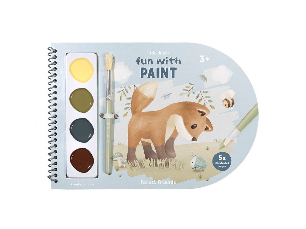 Krásné omalovánky na silném papíru obsahují 4 akrylové barvy se štětcem, 5 jednoduchých obrázků s motivy zvířátek a 25 čistých stránek pro malování dle vlastní fantazie dítěte. Díky spirále ve hřbetu se stránky omalovánek snadno otáčí. Omalovánky nabízí skvělý způsob, jak rozvíjet jemnou motoriku i představivost dítěte. Omalovánky jsou součástí designové kolekce hraček a doplňků Little Dutch Forest Friends, inspirované životem v lese. Rozměry: 21 x 30 x 1,5 cm Vhodné pro děti od 3 let.