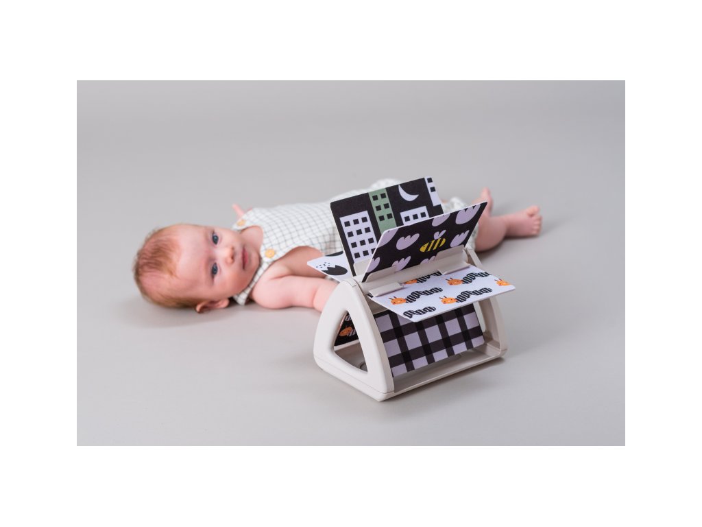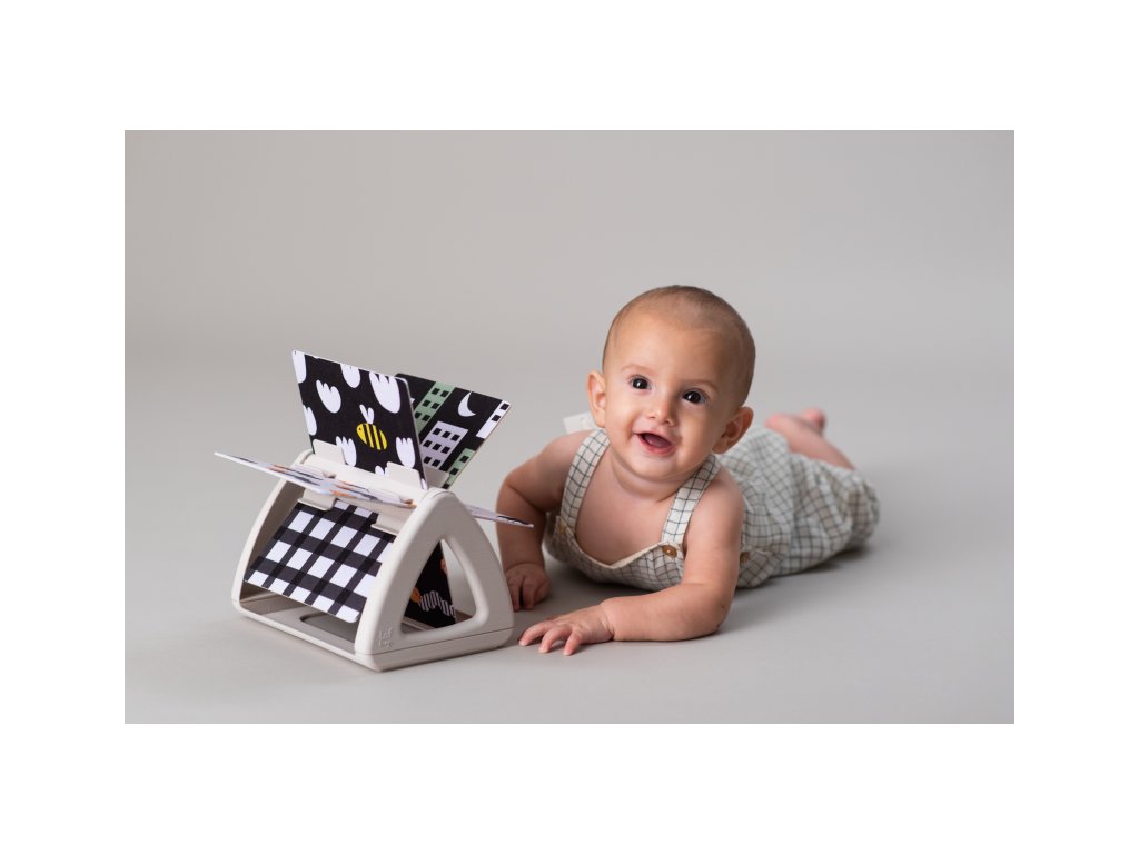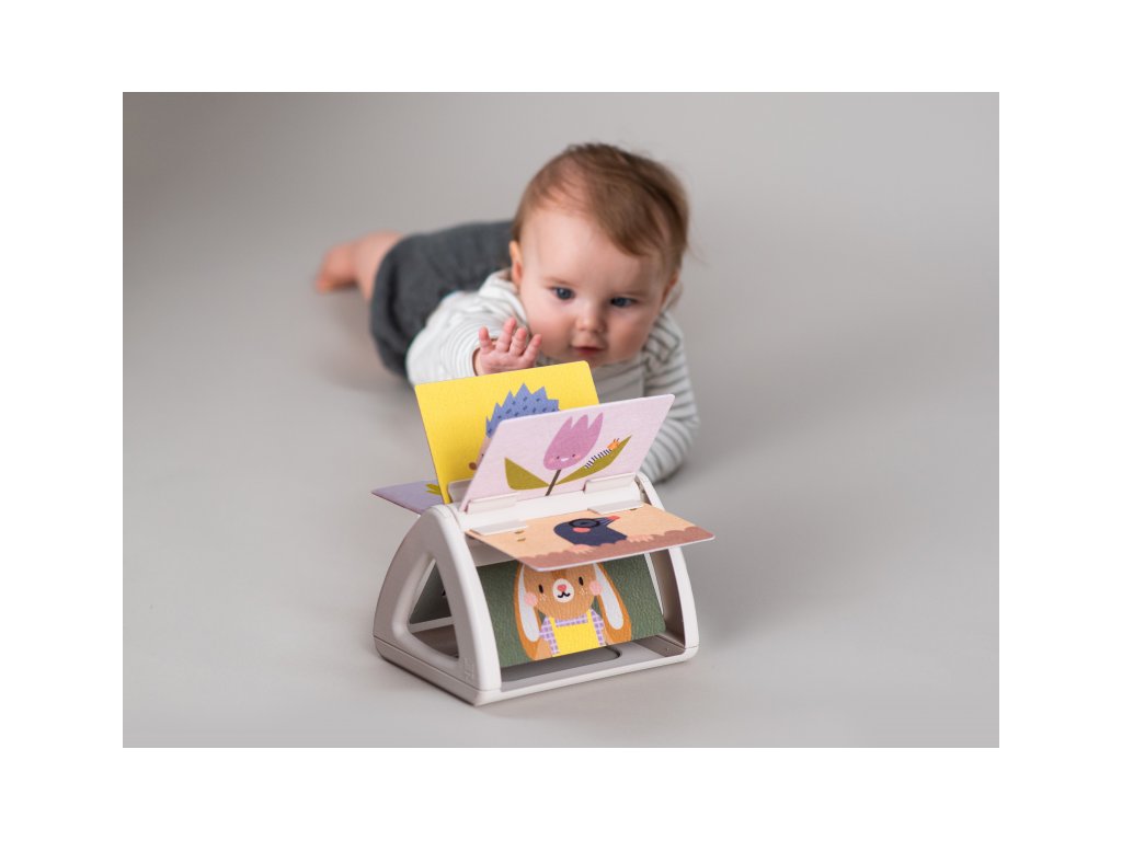 Originální otočná knížka s krásnými ilustracemi motivů ze života na zahradě nabízí různé typy obrázků pro tři vývojová stádia dítěte: 0-3 měsíce: vysoce kontrastní, jednoduché obrázky v základních barvách, které podněcují rozvoj smyslů a emoční inteligence dítěte. Od 3 měsíců: výrazné barevné obrázky a chrasticí zvuk při otáčení jednotlivých stránek upoutají pozornost dítěte při hře na bříšku Od 8 měsíců si dítě dokáže samo vsedě otáčet a prohlížet obrázky, o kterých si můžete společně povídat Rozměry: 19 x 14,50 x 22 cm Vhodné pro děti od narození.