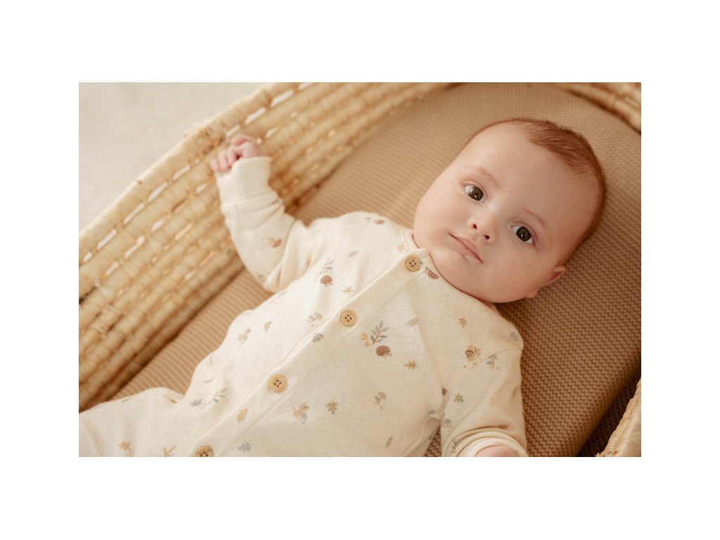 Overal z jemné organické bavlny s krásným potiskem motivů z přírody má zapínání na patentky po celé délce vpředu pro snadné oblékání dítěte. Je součástí kolekce Little Dutch...