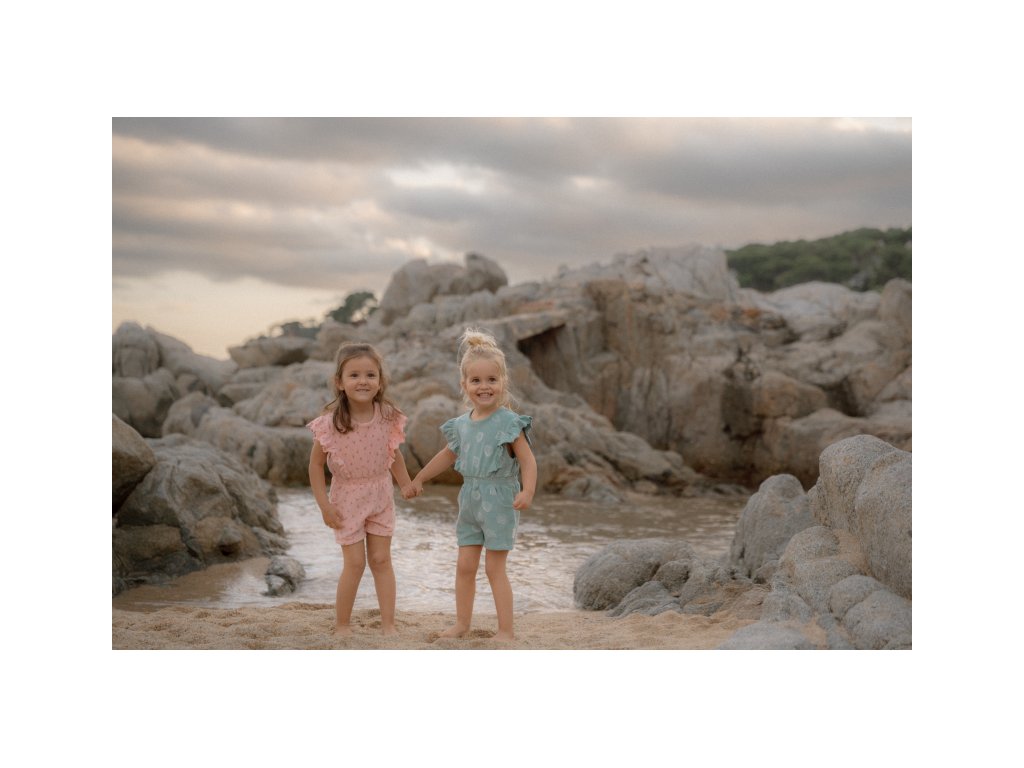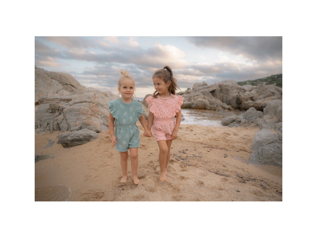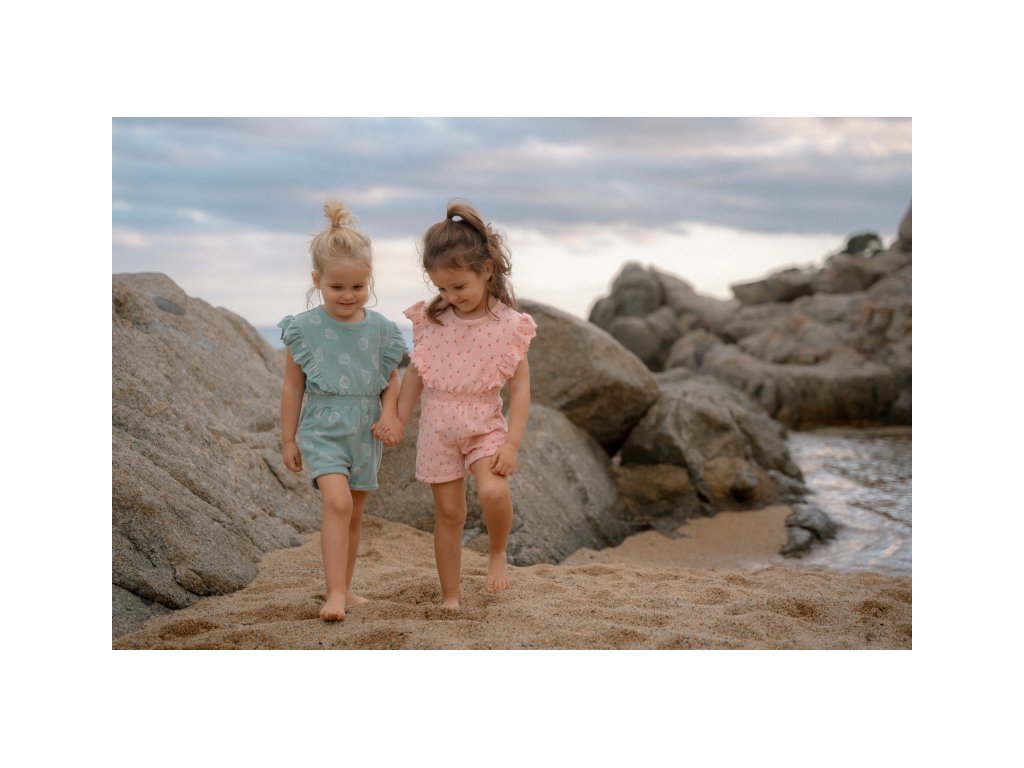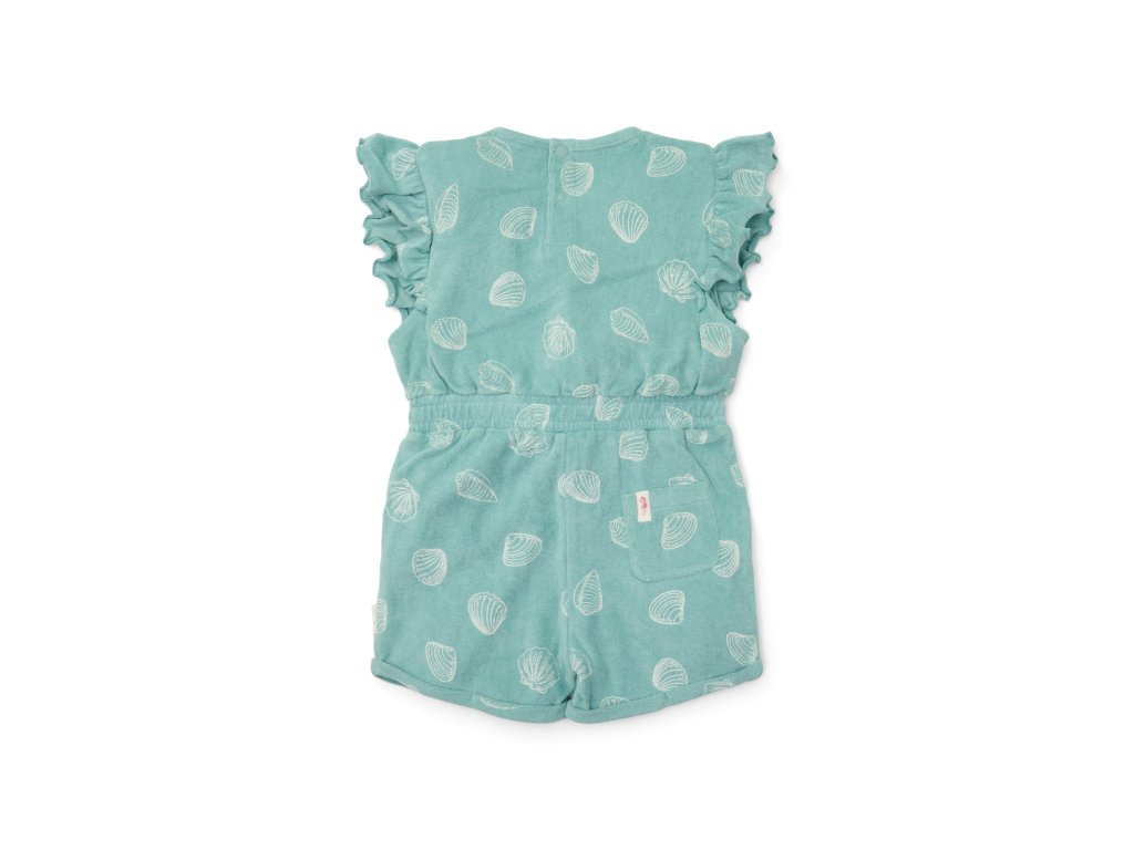 Příjemný overal z bavlněného froté, ideální pro letní dny na pláži, zahradě i na výletech. Vyrobeno ze 100% organické bavlny, pratelné na 30°C.