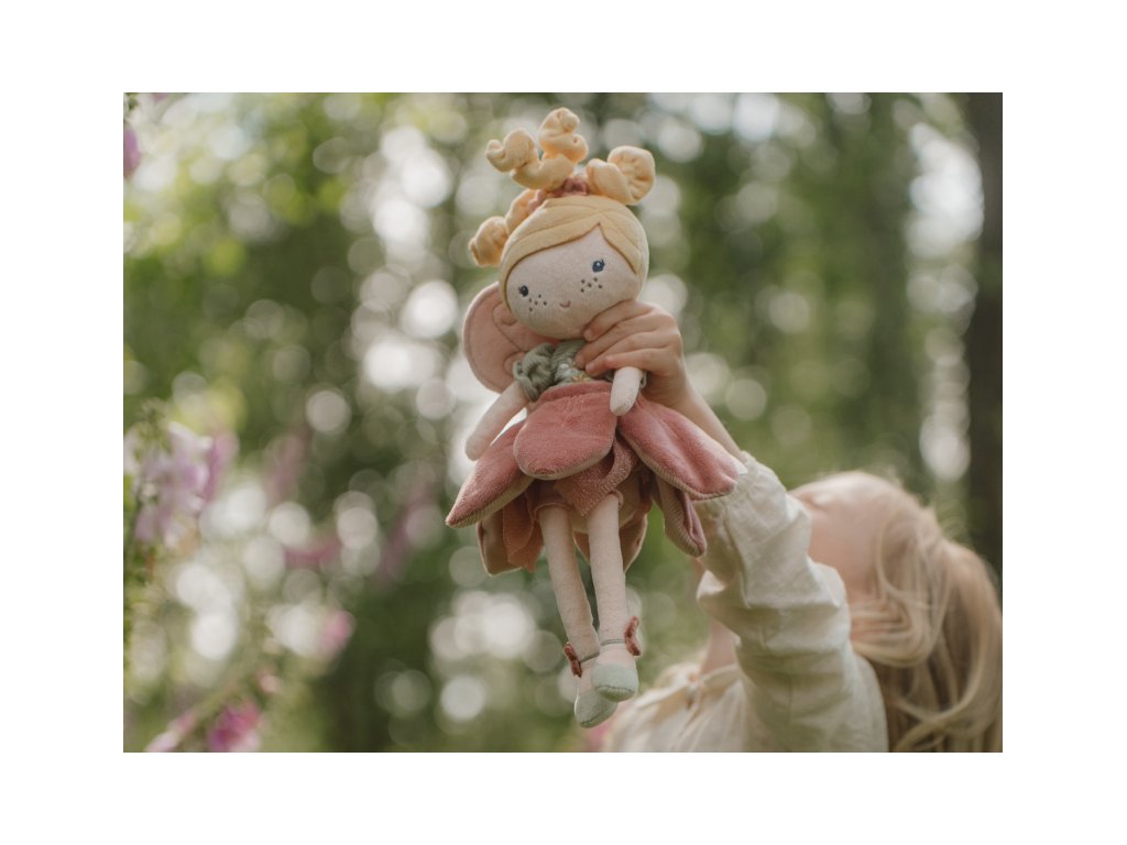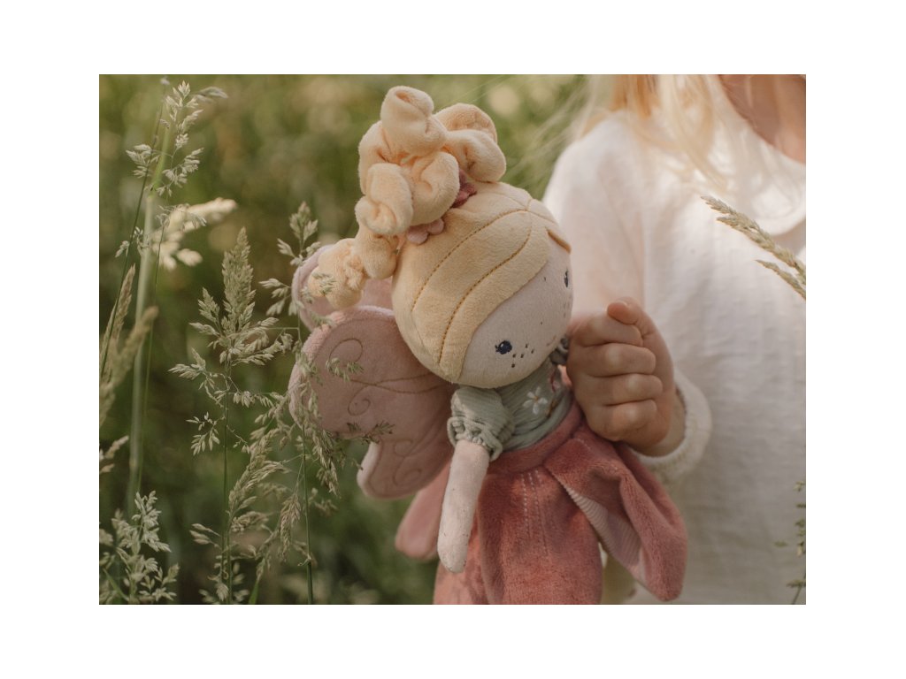 Z kouzelné květinové zahrady k vám domů přichází neodolatelná víla Mila! Panenka z jemnoho měkkého materiálu s křídly a krásnými šaty je vhodná na hraní i mazlení a bude se s ní i krásně usínat! Panenka dodávaná v krásném dárkovém boxu je součástí designové kolekce hraček a doplňků Little Dutch Fairy Garden inspirované životem na zahradě.. Složení: 100% polyester Výška: 35 cm Možno prát v pračce. Vhodné pro děti od 12 měsíců.